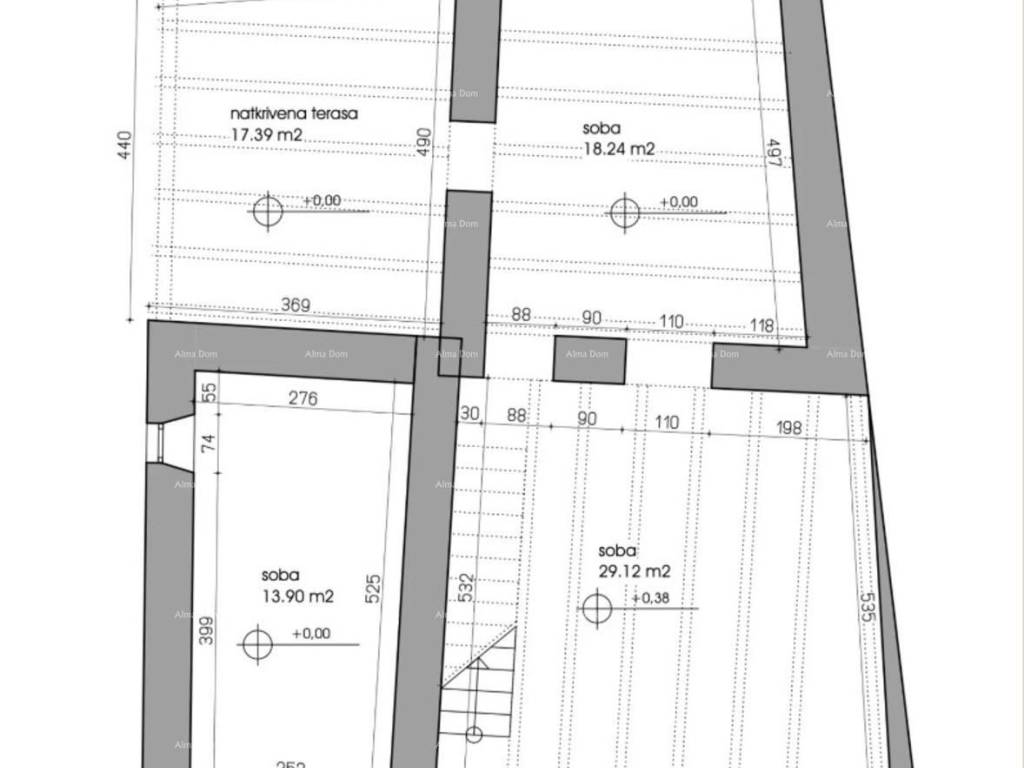 Stara kamena kuća (190 m, tri kata) za renovaciju, s mogućnošću korištenja kao wellness-zona, umjetnički prostor ili dodatni apartmani.
