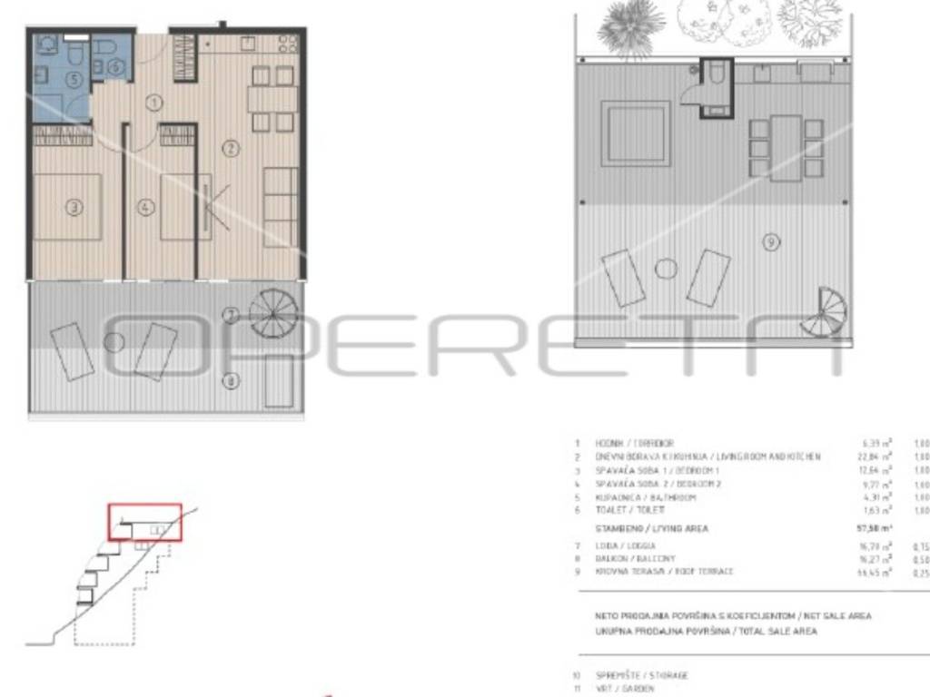 JESENICE - NEWLY BUILT APARTMENTS Penthouse 402 is for sale in a new building not far from Split in Krilo Jesenice. It consists of a hallway, a living room with a kitchen and a dining room, 2 bedrooms, a bathroom, a toilet, a loggia, a balcony and a beautiful roof terrace. The apartment has a garden and a storage room. There is a possibility to buy a parking space for 30,000 EUR. Jesenice is a small town located on the coast between Split and Omis, known for its beautiful beaches and secluded coves. Jesenice is an ideal choice for a peaceful and relaxing holiday although it is only 15 kilometres from Split, the second largest city in Croatia. The place is known for its wooden sailing ships for the tips along the coast, the old tradition of over 300 years. Jesenice has 2200 inhabitants.