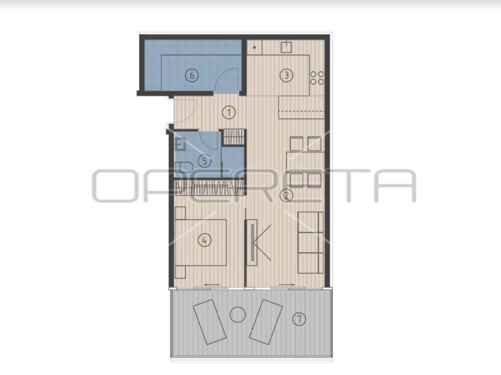 JESENICE - NEWLY BUILT APARTMENTS Apartment S04 is for sale on the ground floor of a new building in Krilo Jesenice, not far from Split. The apartment consists of a hallway, bedroom, wardrobe, bathroom, living room, kitchen with dining room and a 12.31 m2 loggia. There is an option to purchase a parking space at a price of 30,000 euros.