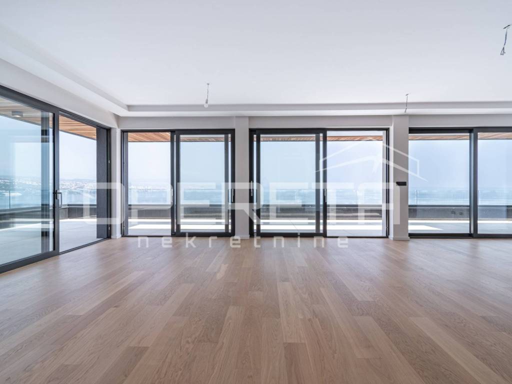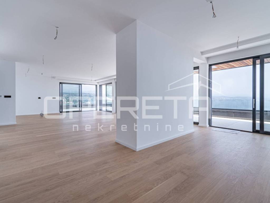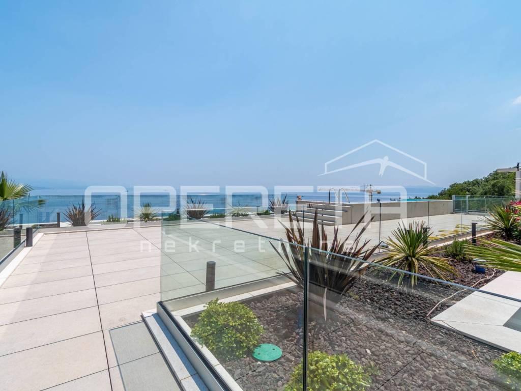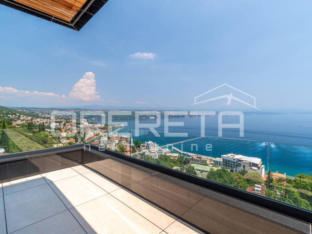 Situated on a unique elevated position on the top floor of a modern new development, this exceptional penthouse offers a rare blend of contemporary design, complete privacy, and the refined elegance of Mediterranean living. Located in Opatija one of the Adriatics most prestigious coastal destinations the residence boasts unobstructed panoramic views of the sea and Opatijas historic town center, all within walking distance of fine dining, charming cafés, boutiques, and the famous seaside promenade.