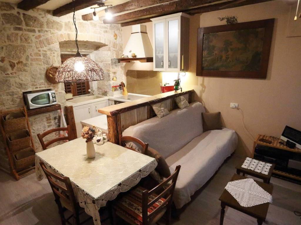Posredujemo pri prodaji predivne stare izvorne kamene kuće, kompletno adaptirane prije nekoliko godina. Kuća ima u tlocrtu 28 m2. U naravi jedan stan, koji se sastoji od prizemlja, gdje je smještena kuhinja s trpezarijom i dnevnim boravkom, kupatilo, prvog kata na koji se dolazi unutarnjim stepenicama, gdje je jedna soba, te drugog kata gdje su smještene dvije spavaće sobe, sa zajedničkim kupatilom sa jacuzzijem, te galerije s bračnim krevetom. Sve su prostorije u kući klimatizirane, i sve imaju prozore, oprema je u cijeni. Kod adaptacije se nastojala očuvatiljepota autohtonog dojma, te se mislilo na detalje i funkcionalnost. Krov je novi, u kuću nije potrebno ulaganje. Iz kuće se izlazi u dvorište od 15 m2, sa prostorom za ugodan boravak, zaklonjeno zelenilom, koje je u posjedu vlasnika 100 godina, odnosno izvanknjižno vlasništvo.Susjedstvo je mirno, dobrosusjedski odnosi, sve okolne kuće su u funkciji turizma. Kuća ima izvanredne recenzije gostiju, te je godinama u turističkom najmu. Ako novi vlasnik kupi kuću kao investiciju, prema dosadašnjim rezultatima baziranim na iznajmljivanju od 5 mjeseci godišnje,ima povrat u roku od 12 godina. Odlična lokacija, blizina ceste, mora, rive, centra i svih sadržaja potrebnih gostima ali i za stanovanje. Nekretnina već ima rezervacije za predstojeću sezonu, te je taj dio u slučaju realizacije kupoprodaje stvar dogovora.