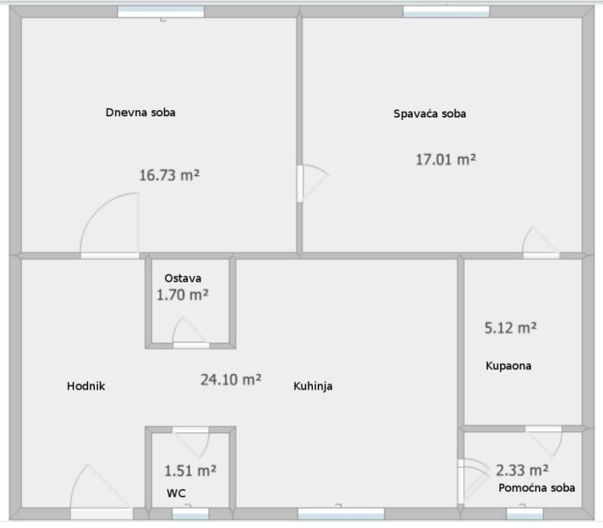 The apartment consists of: entrance hall, balcony, kitchen, pantry, living room, 2 bedrooms, bathroom and guest toilet.