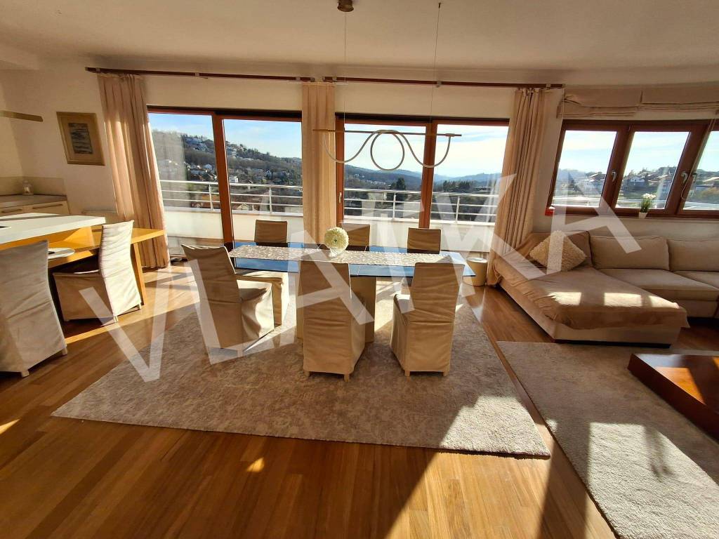 A furnished 4-room penthouse for rent in a great location with a beautiful view, 5 minutes from public transport, 10 minutes by car to the city center.