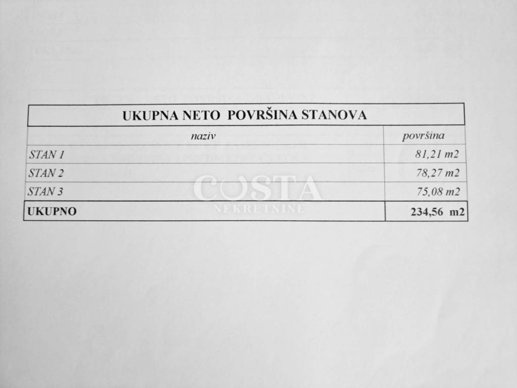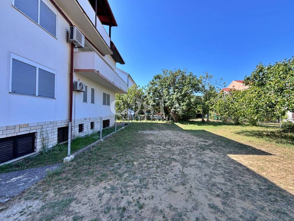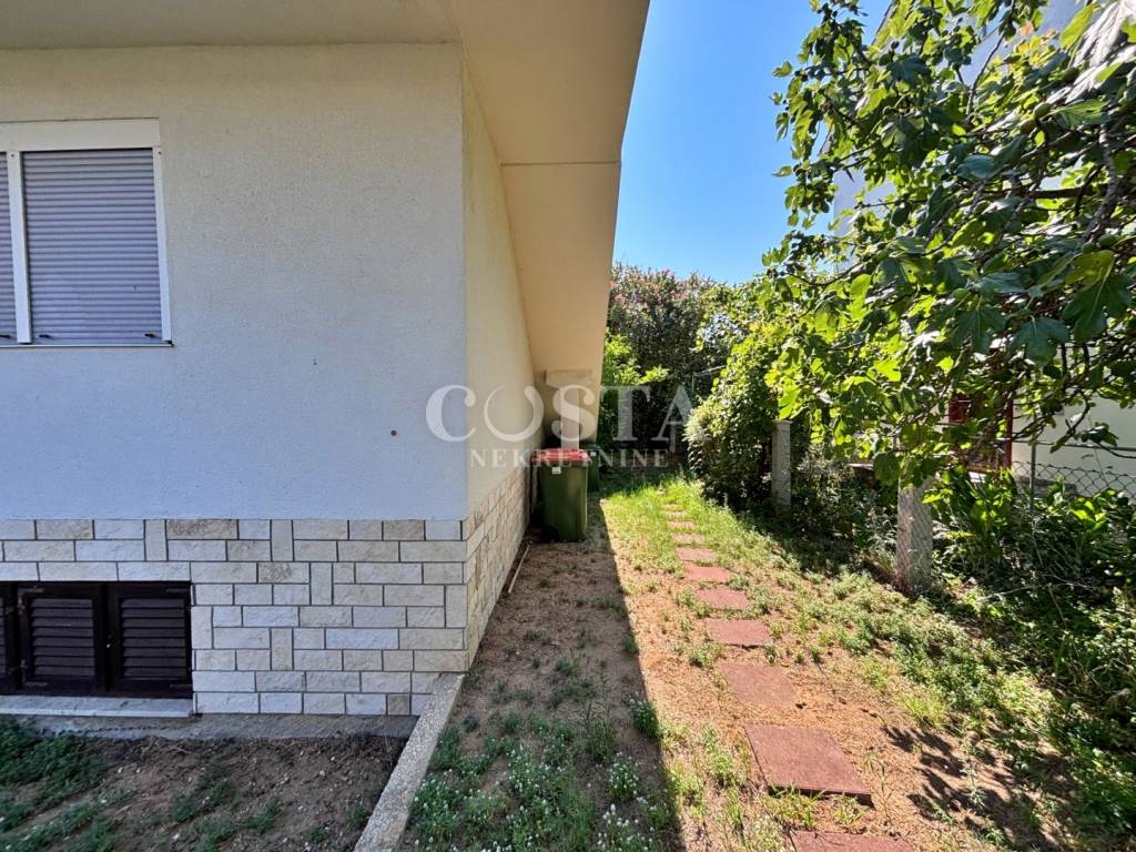 An apartment house for sale in Sabunike in Privlaka near Zadar. The 319 m2 building is built on a 528 m2 plot. It consists of a basement and three apartments. The 83 m2 basement, which can be converted into living space, has three rooms. On the ground floor there is an 81 m2 apartment consisting of a living room, kitchen and dining room, bathroom, additional toilet, two bedrooms and a terrace and a storage room. On the first floor there is also an apartment with two bedrooms of 78.27 m2. In the attic there is an apartment of 75 m2 with a living room, four bedrooms, a bathroom and an additional toilet and a terrace. In the spacious fenced yard there is a garden and private parking.