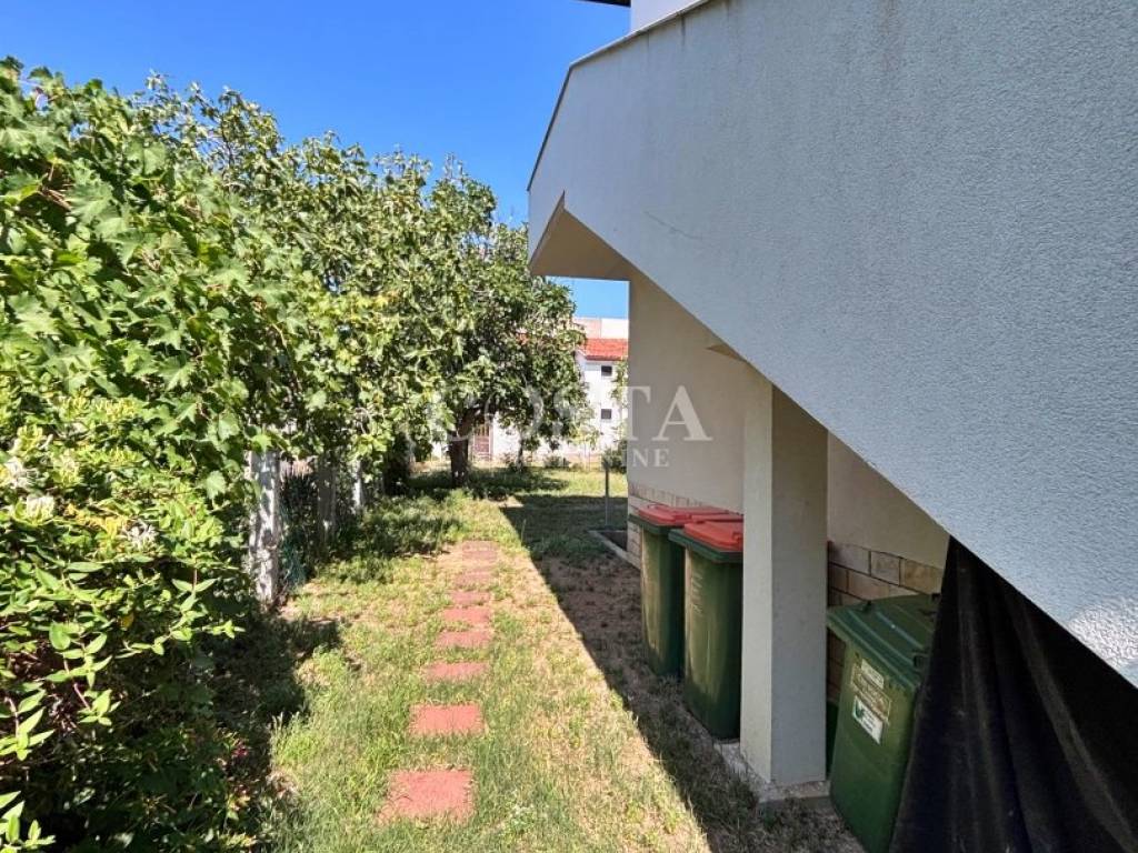 A condominium apartment is for sale in an apartment house in Sabunike near Zadar. The apartment, measuring 81.21 m2, is located on the ground floor of a two-story condominium. It consists of a living room, kitchen and dining room, bathroom, additional toilet, two bedrooms, storage room and an 18 m2 terrace. There is a garden and private parking in the spacious fenced yard.