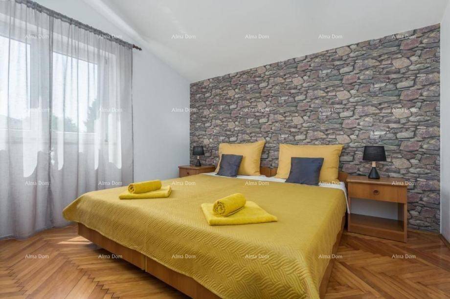 For sale house with apartments in Štinjan total area of 420 m of living space and 448 m of yard, with great potential. The house consists of a ground floor and 2 floors. Ground floor: Currently used as a business space, with the possibility of converting into 2 additional apartments, thus increasing the income potential or expanding the family space. First floor: Spacious apartment of 100 m, categorized, ideal for family life or tourist rental. Second floor: 3 additional categorized apartments, suitable for rental or family use. Yard: Large yard in front with large parking space. Spacious green area behind the house with the possibility of expanding or building additional facilities. Access to the house possible from the front and back by vehicle. Additional spaces: Tavern and garage for storage or upgrades.