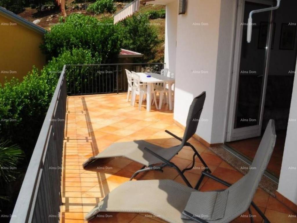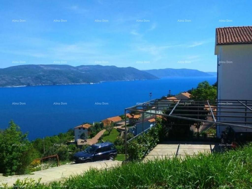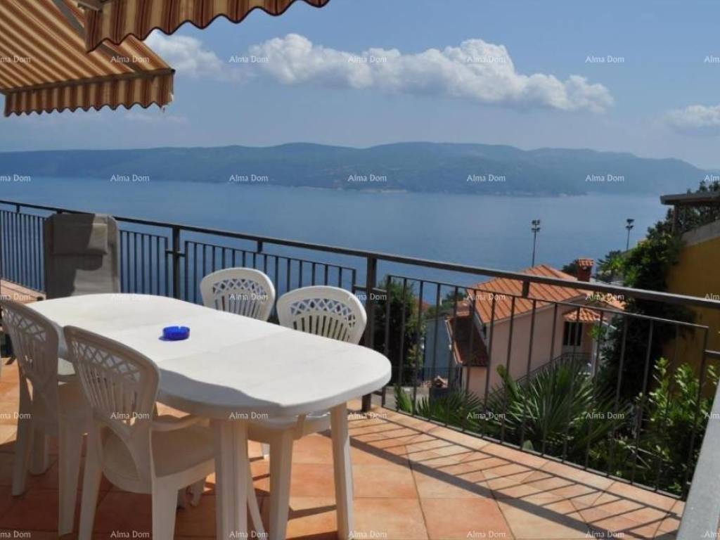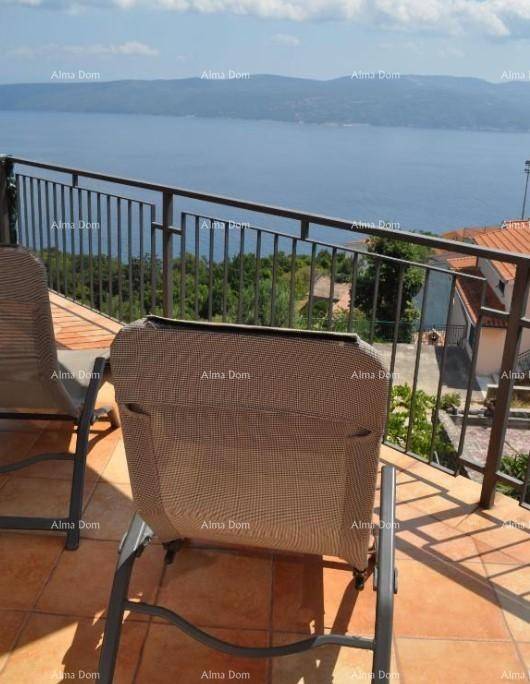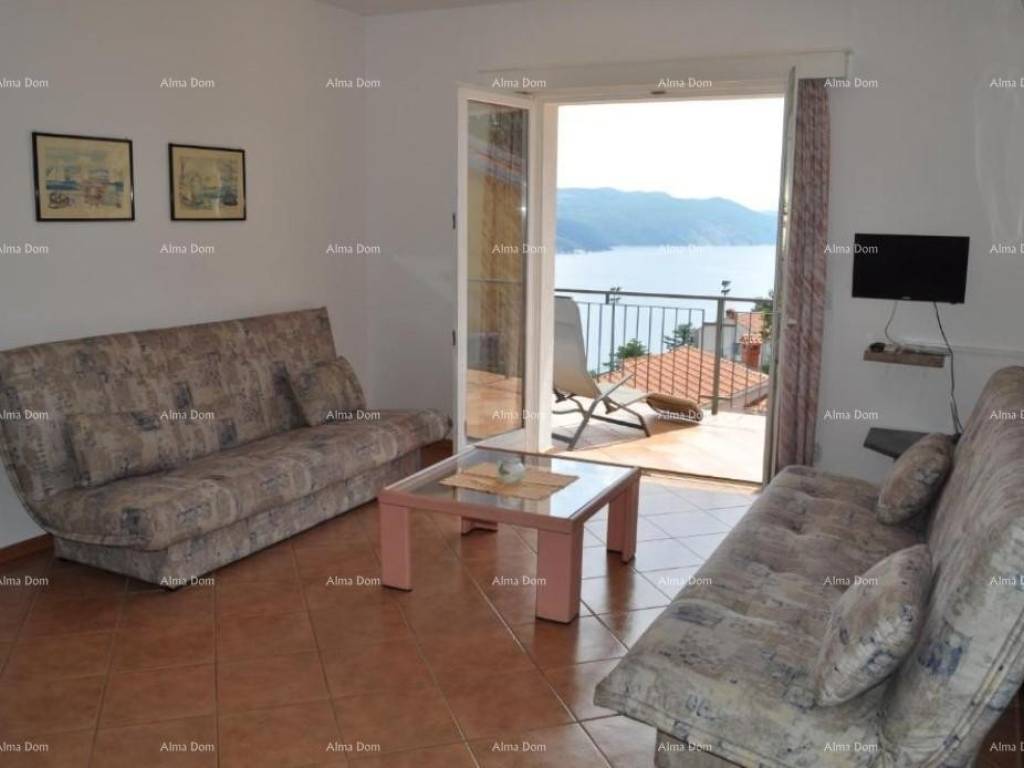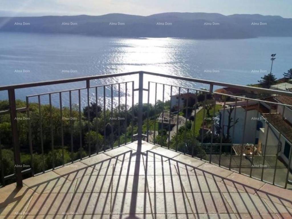 A house with apartments for sale in a very quiet place with a panoramic view of the sea, Rabac. The house has 368 m2 of living space and is located on a plot with a total area of 835 m2. The house consists of a basement, ground floor and two floors. The basement was used as a tavern. It offers a space for socializing, a kitchen, a bathroom and a fireplace. Total area 30 m2. It has an exit to the garden. On the ground floor there is a newly renovated apartment consisting of two bedrooms, a bathroom, a kitchen and a living room with a terrace and a storage room. Total area 95 m2. There are three separate residential units on the first floor. The apartments consist of a bedroom, a living room and a kitchen with access to a private terrace and a bathroom. On the second floor there is a ROH-BAU apartment with its own terrace. The apartment consists of 125 m2. The apartment offers a unique view and offers the new owner various possibilities.