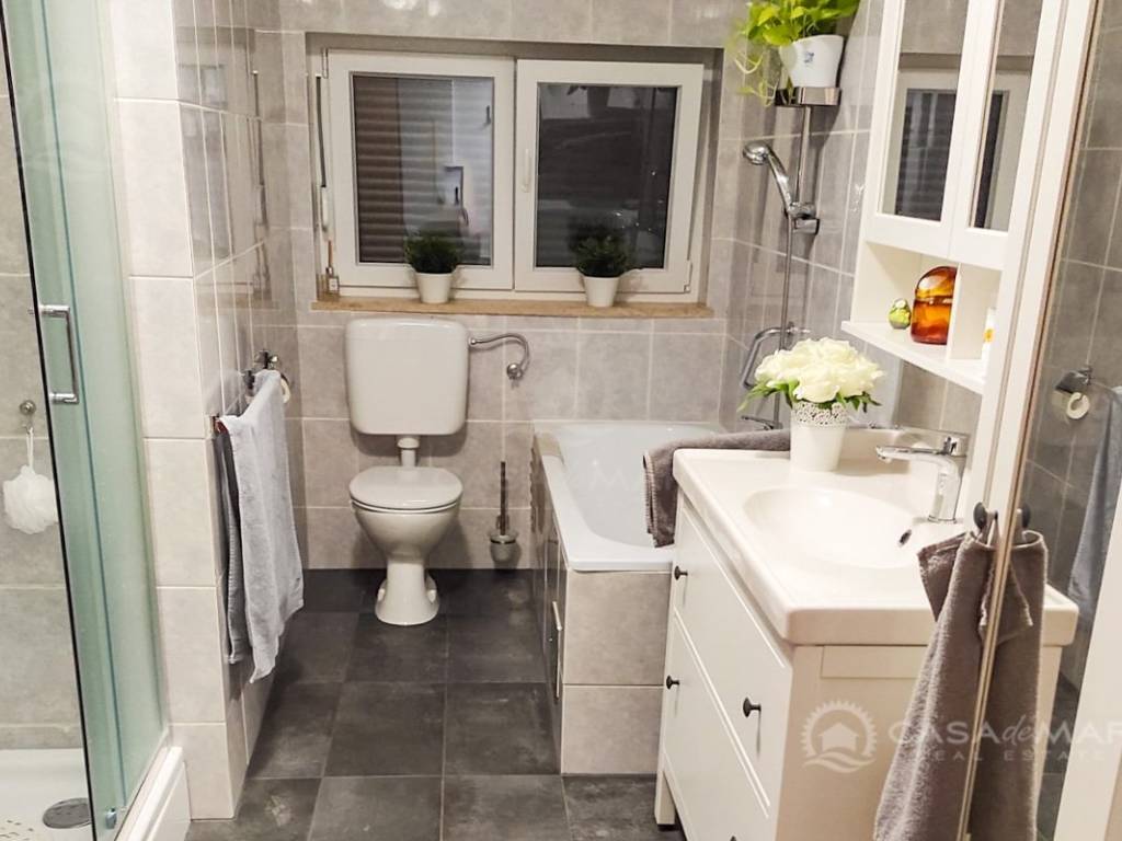 For sale is a 66 m² apartment located on the 4th floor (attic) of a residential building in a quiet part of Novi Vinodolski. The apartment consists of a living room with kitchen and dining area, one bedroom, bathroom, and a balcony with panoramic views of the sea and surroundings. The apartment was completely renovated in 2024 and is equipped with air conditioning and radiators for heating. It comes with one parking space, and a shared storage room is available on the ground floor of the building. Additional benefits include an attic that can be used as extra storage space and an intercom system. The distance from the sea is 380 meters, making this property ideal for holidays, permanent living, or tourist rental.