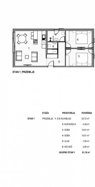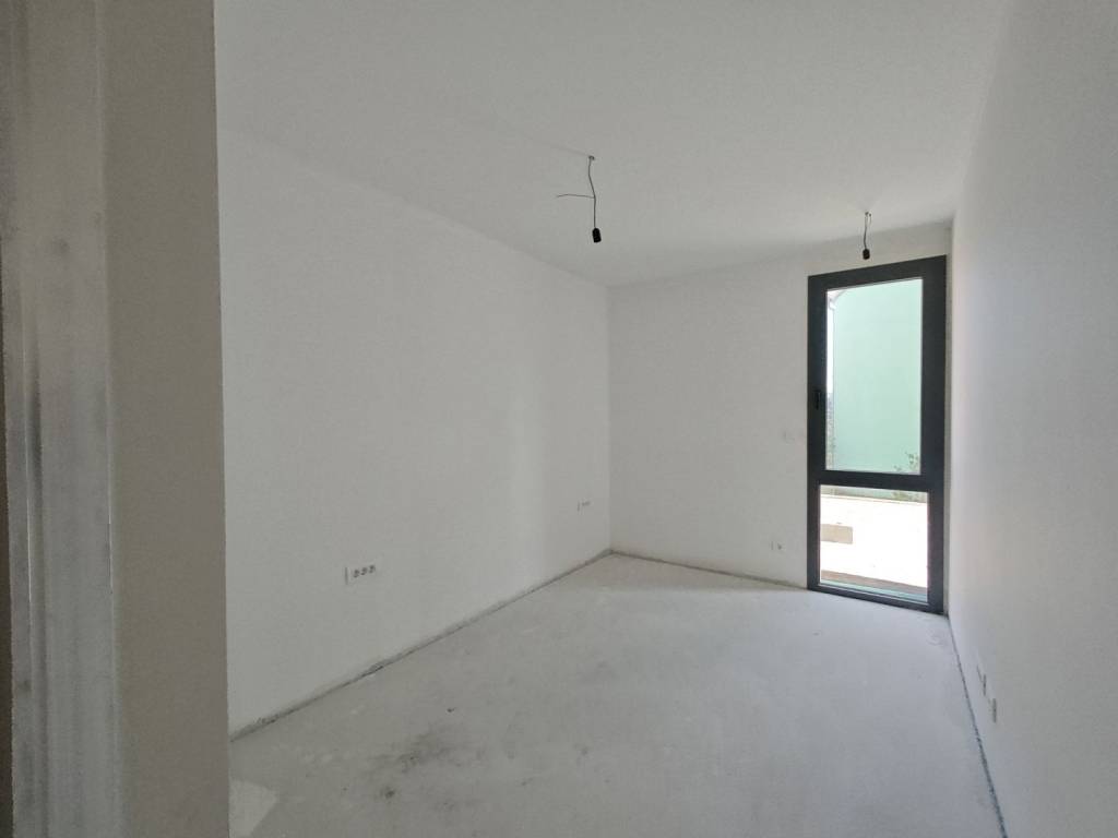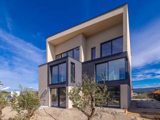 The apartment is located on the ground floor of a modern new building in the town of Krk and is designed as a functional, clearly organized residential unit with a direct connection between the interior and exterior spaces.