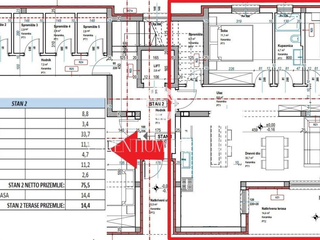 For sale is an apartment with a net living area of 75.5 m plus a covered terrace of 14.4 m net, located on the ground floor of a high-quality residential building with an elevator, currently under construction.