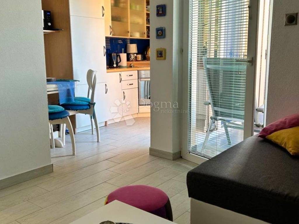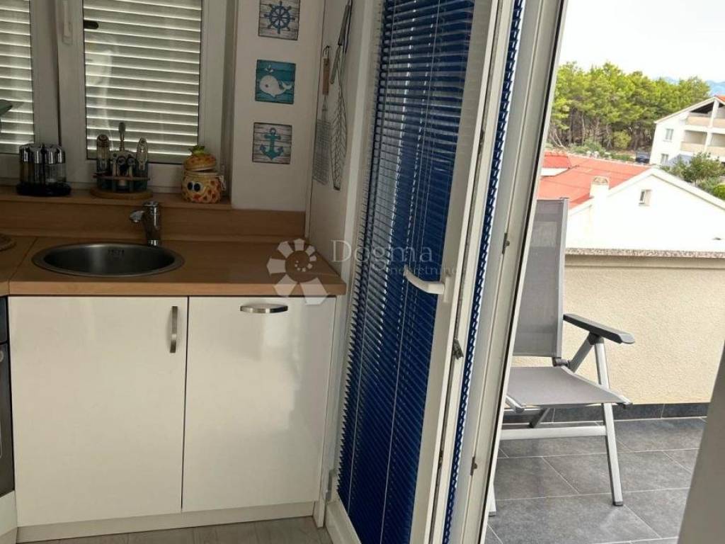 The west-facing terrace is perfect for relaxing outdoors while enjoying stunning Adriatic sunsets. With a secured parking space included, the total net usable area of the apartment is 48.35 m.
