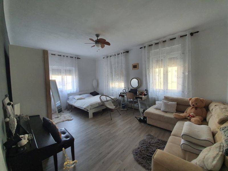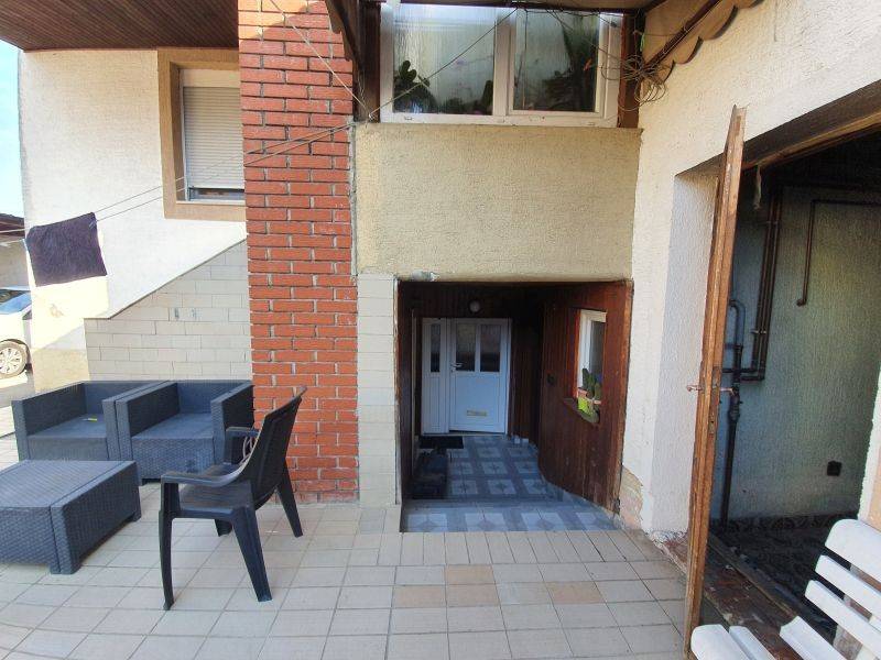 Sa desne strane dvorišta nalazi se samostojeća prizemna kuća, 130 m2, koja se sastoji od 3-sobnog stana (glavni centralni ulaz), prostrani dnevni boravak sa kuhinjom i blagovaonicom, u nastavku spavaćom sobom, kupaonica sa tuš kabinom i wc-om, hodnika i još jedne velike sobe sa druge strane hodnika, dok se sa strane natkrivene terase nalazi manji aprartman sa vlastitim ulazom. Ispred te dvorišne kuće nalazi se velika natkrivena terasa cca 40m2.