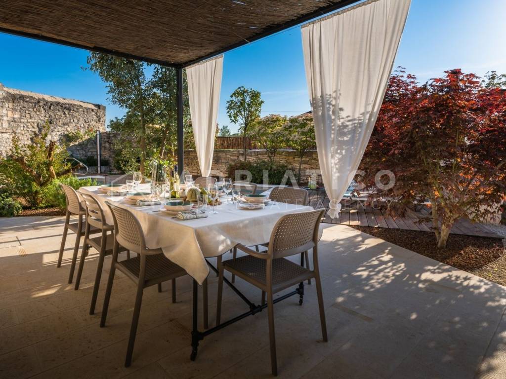 The fenced and landscaped garden ensures privacy and a relaxing atmosphere. The heated saltwater pool (25 m), outdoor kitchen with barbecue, covered terrace, and outdoor dining area create a perfect setting for enjoying Istrian summers.