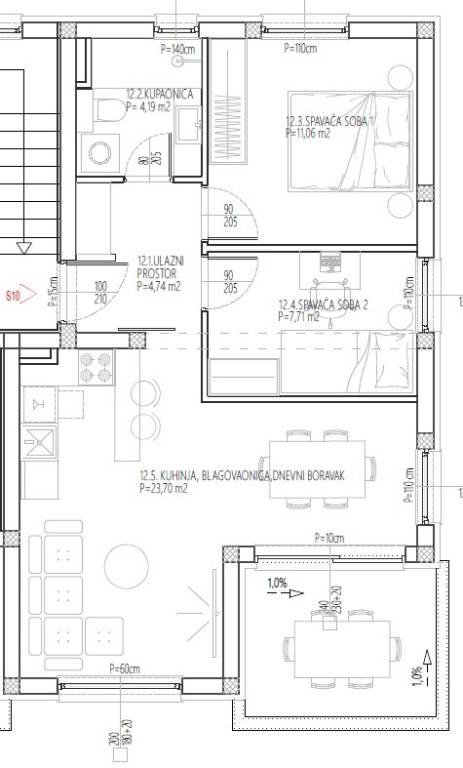 APARTAMENTO S10 tiene 60,76 m2 de superficie útil neta con coeficientes incluidos, y consta de: entrada, 2 dormitorios, baño, cocina y comedor, sala de estar, terraza y 1 plaza de aparcamiento. El precio es de 200.000 € (el comprador está exento del pago del 3% de impuesto sobre transmisiones patrimoniales).
