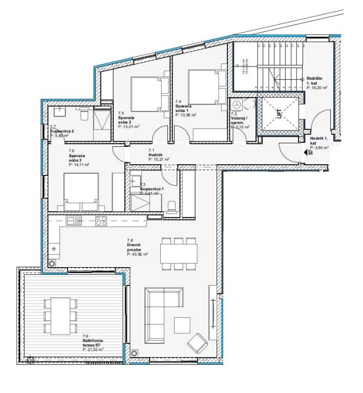 VODICE – APARTAMENTO S7, PRIMER PISO – CONSTRUCCIÓN MODERNA NUEVA CON TERRAZA, VISTA AL MAR – 125,48 m2