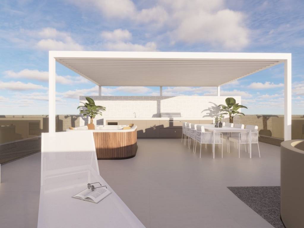 On the second floor there is a penthouse with a living area of 90m2 and private access to a roof terrace with an area of approximately 65m2.
