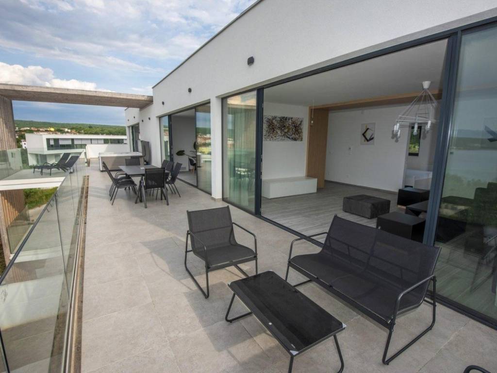 A luxury penthouse with a total area of 215 m is for sale in Malinska, located on the second floor of a low-energy apartment villa, 250 m from the sea.