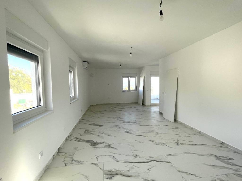 On the island of Krk, in the Soline bay, an apartment is for sale located on the first floor of a new building consisting of three buildings in a row with a total of nine residential units. The apartment has a living area of 71 m and consists of an entrance hall, two bedrooms, a bathroom, a kitchen with a dining area and a living room with access to a covered terrace with a sea view.