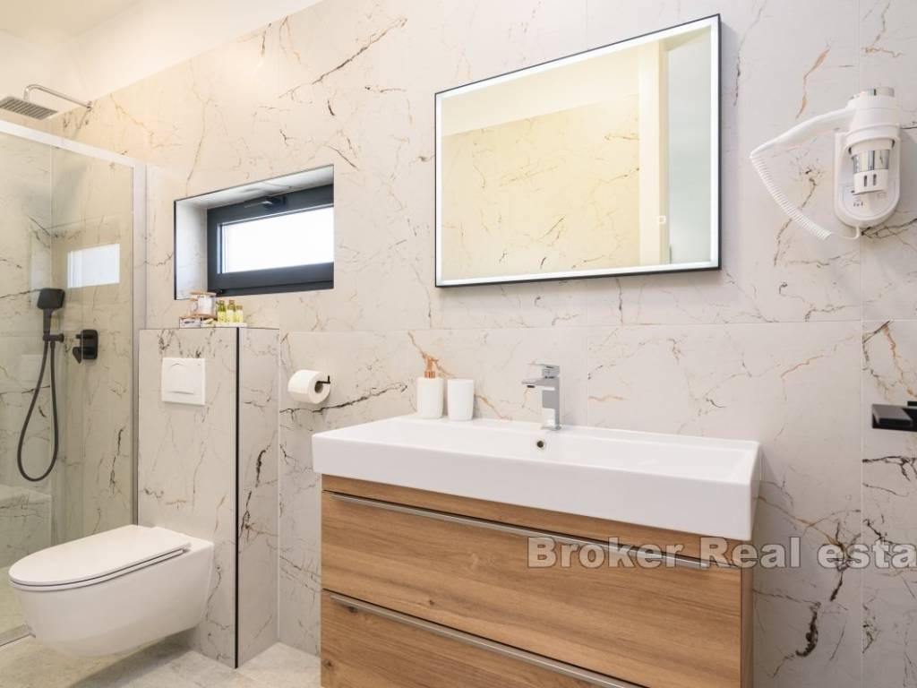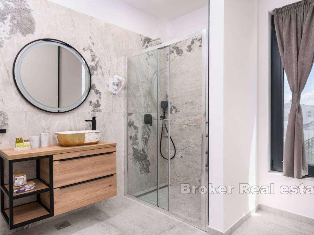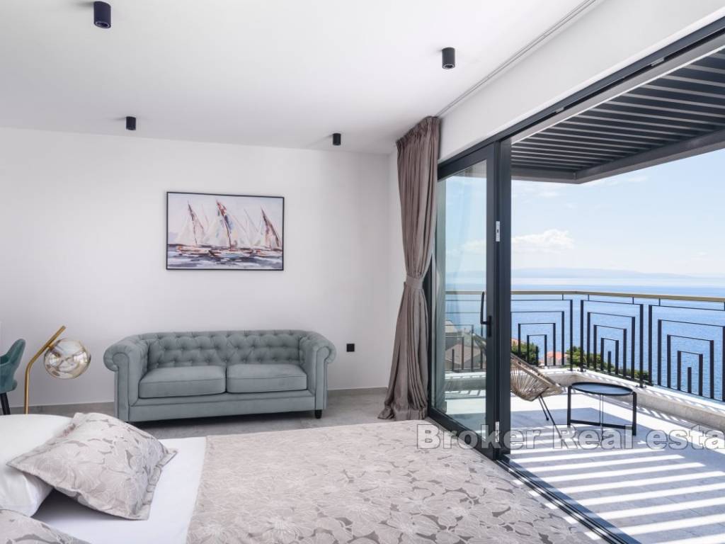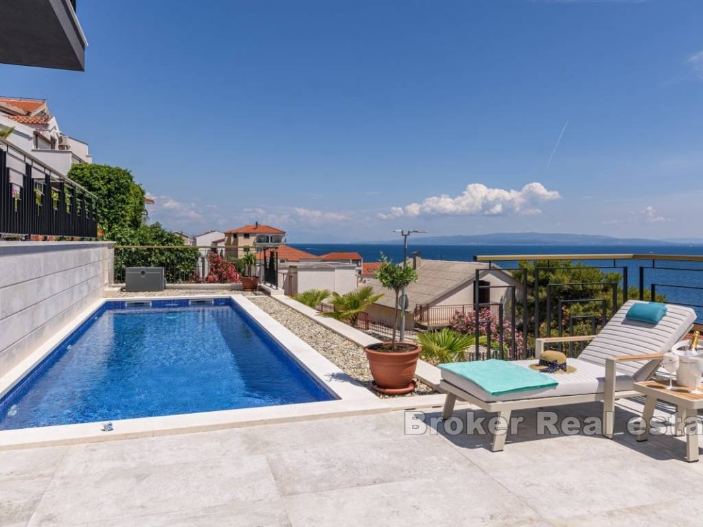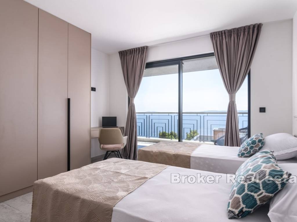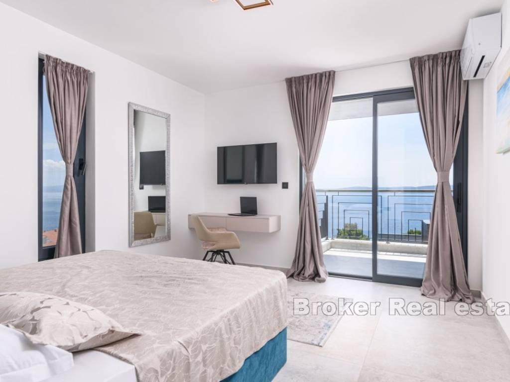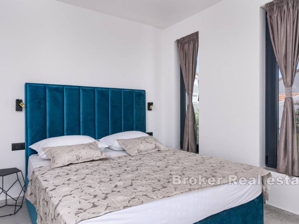 A luxury villa with a panoramic view of the sea and islands is for sale on the southern side of the island of Čiovo. Its 400 m of living space is situated on a plot of 537 m. All rooms are distributed over three floors, while the surroundings of the villa include various amenities.
