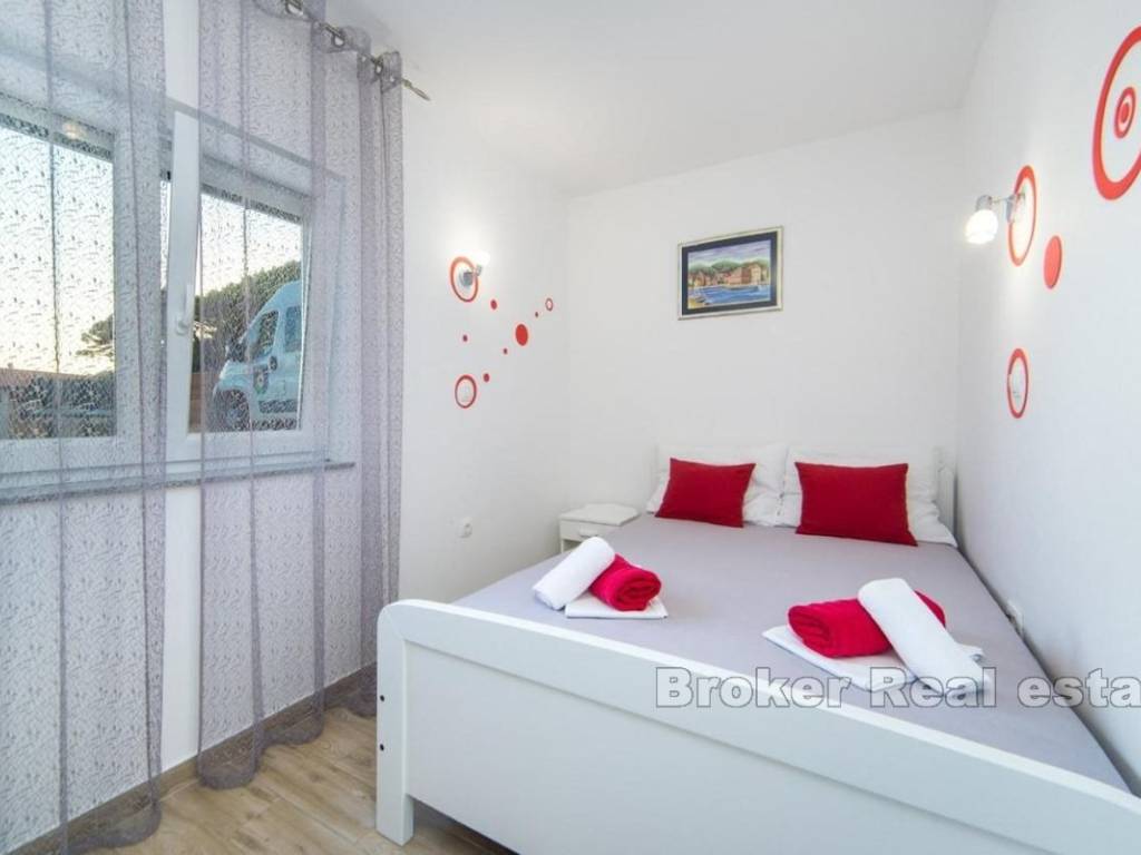 It contains three spacious two-bedroom apartments, one comfortable one-bedroom apartment and a functional studio. The house has a spacious garden, ideal for relaxation or additional facilities.