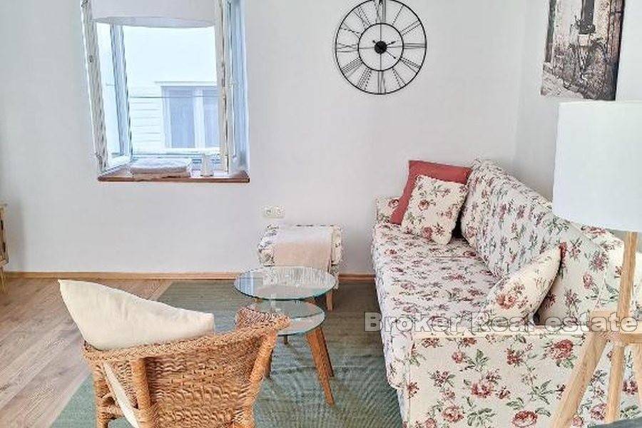 This apartment is located in the heart of the old town, just 60 meters from the sea, which allows easy access to all the sights and amenities of Trogir. There are numerous restaurants, cafes and shops nearby, making it an excellent choice for those who want to be in the center of things. Due to its location, the apartment represents a perfect opportunity for a tourist rental, as it offers an excellent price-quality ratio, with an irresistible Mediterranean atmosphere.