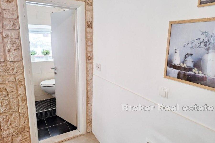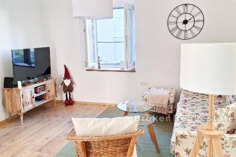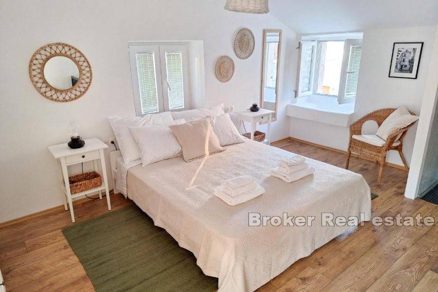 This one-bedroom apartment is located in a traditional Mediterranean stone house in the heart of old Trogir, which exudes charm and historical character. The apartment, with a total living area of 60 m, offers exceptional comfort across three floors, perfectly suited for a family vacation or tourist rental.