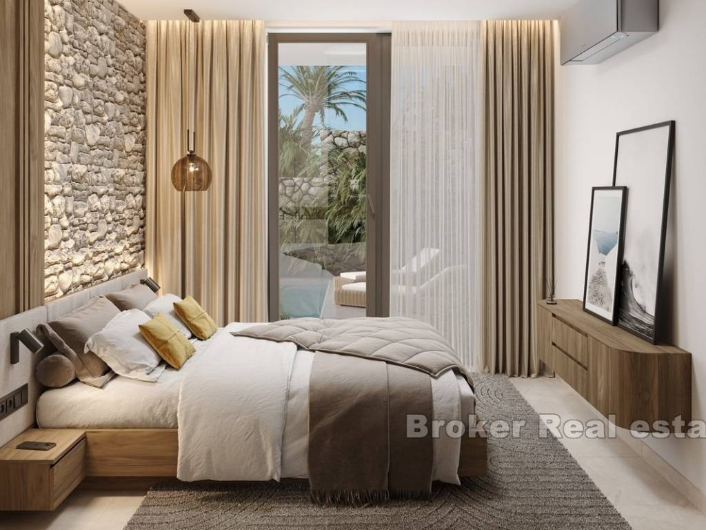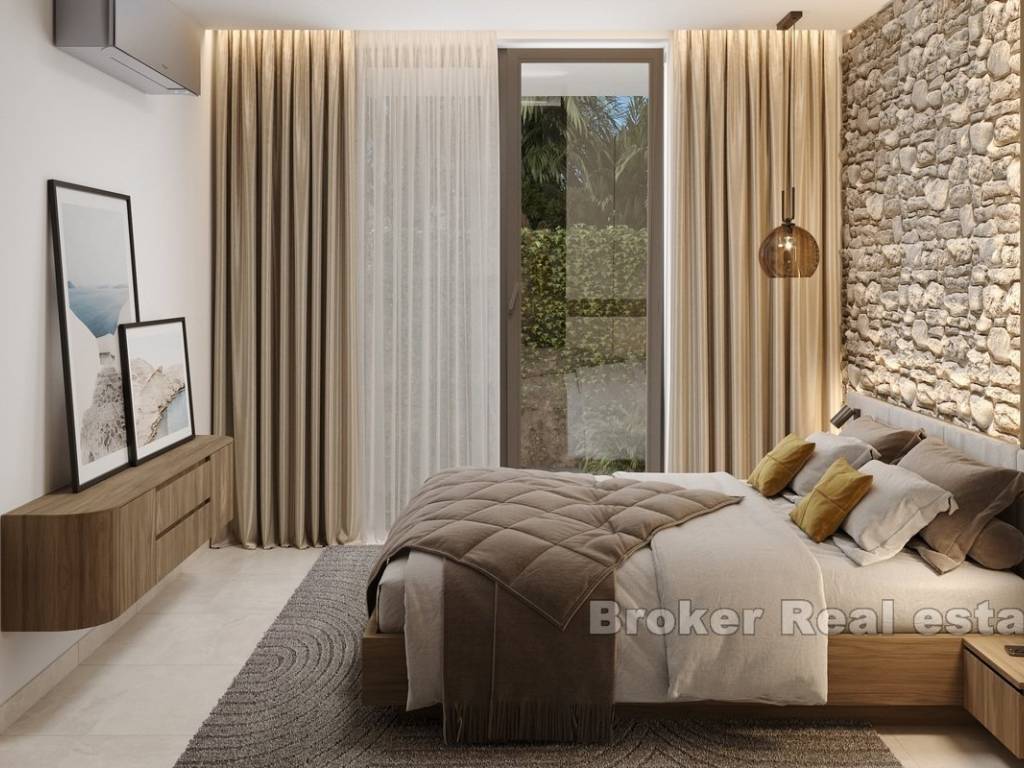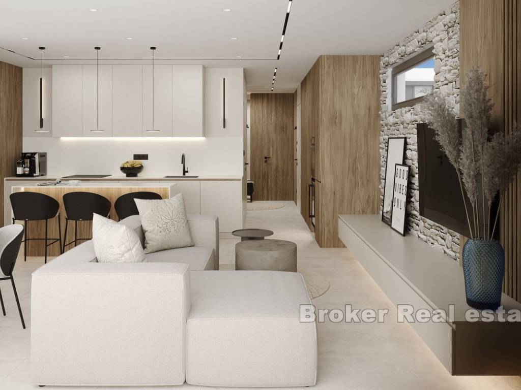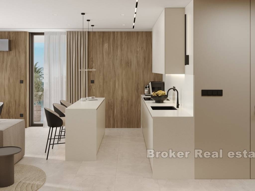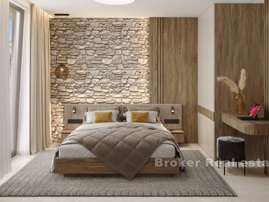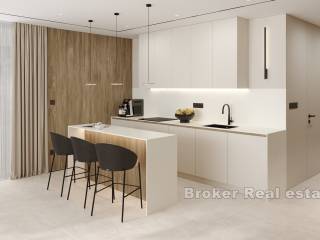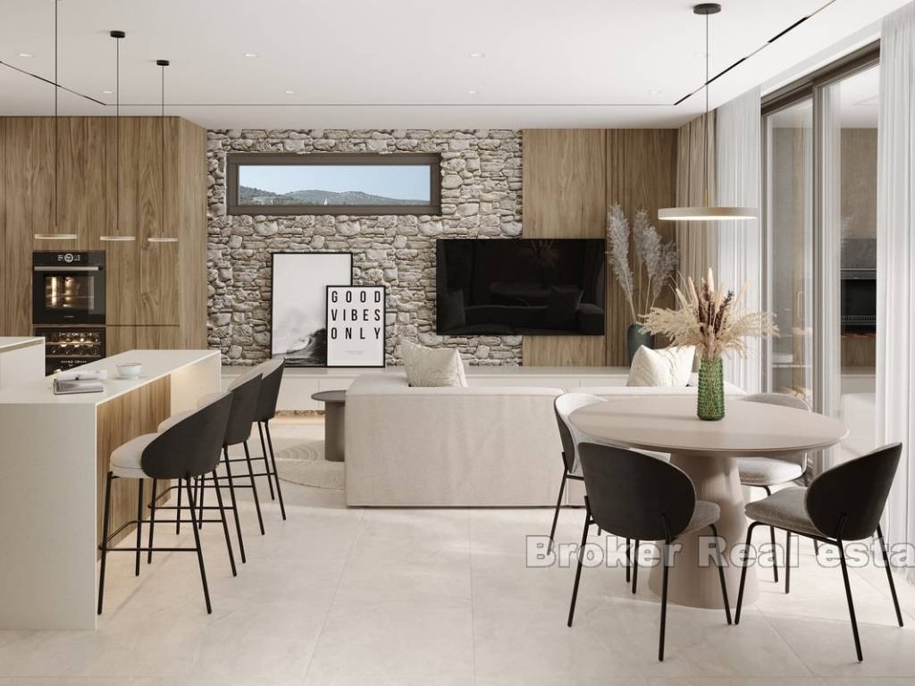 This modern apartment is located in a newly built building consisting of only three luxury apartments, ideally situated in Rogoznica, within walking distance to both the city center and the sea. The property offers stunning panoramic sea views, a private pool, and is built to the highest standards using premium materials and custom-designed furniture.