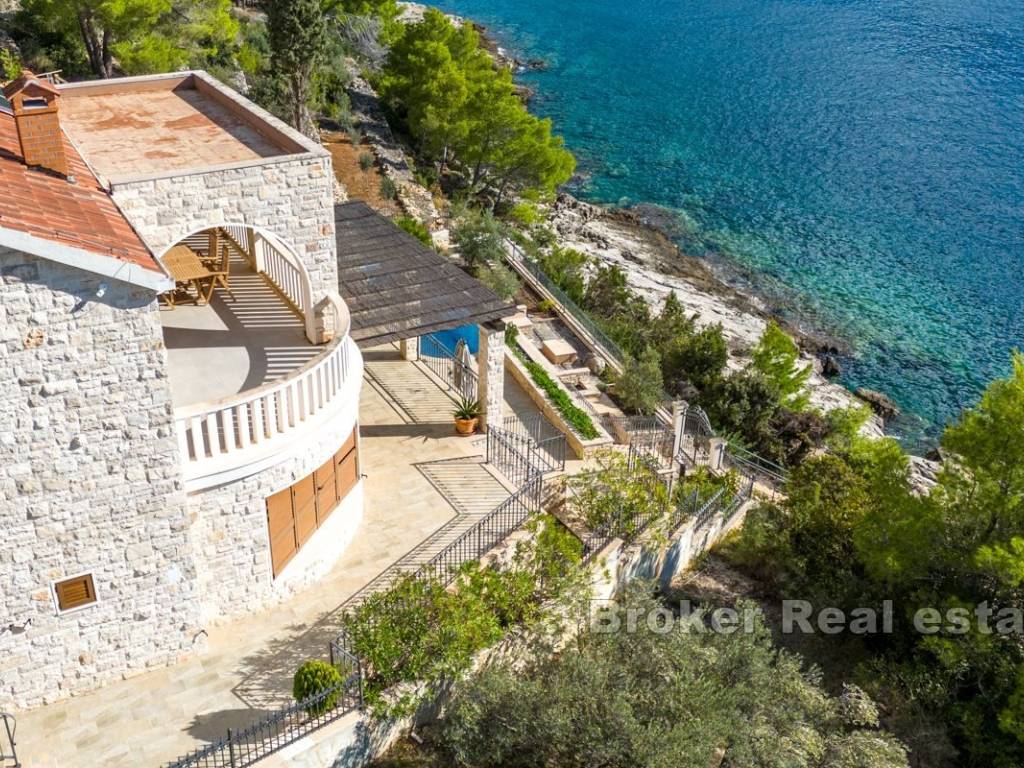 For sale is a renovated stone villa in a prime beachfront location, with a swimming pool and south-facing orientation.