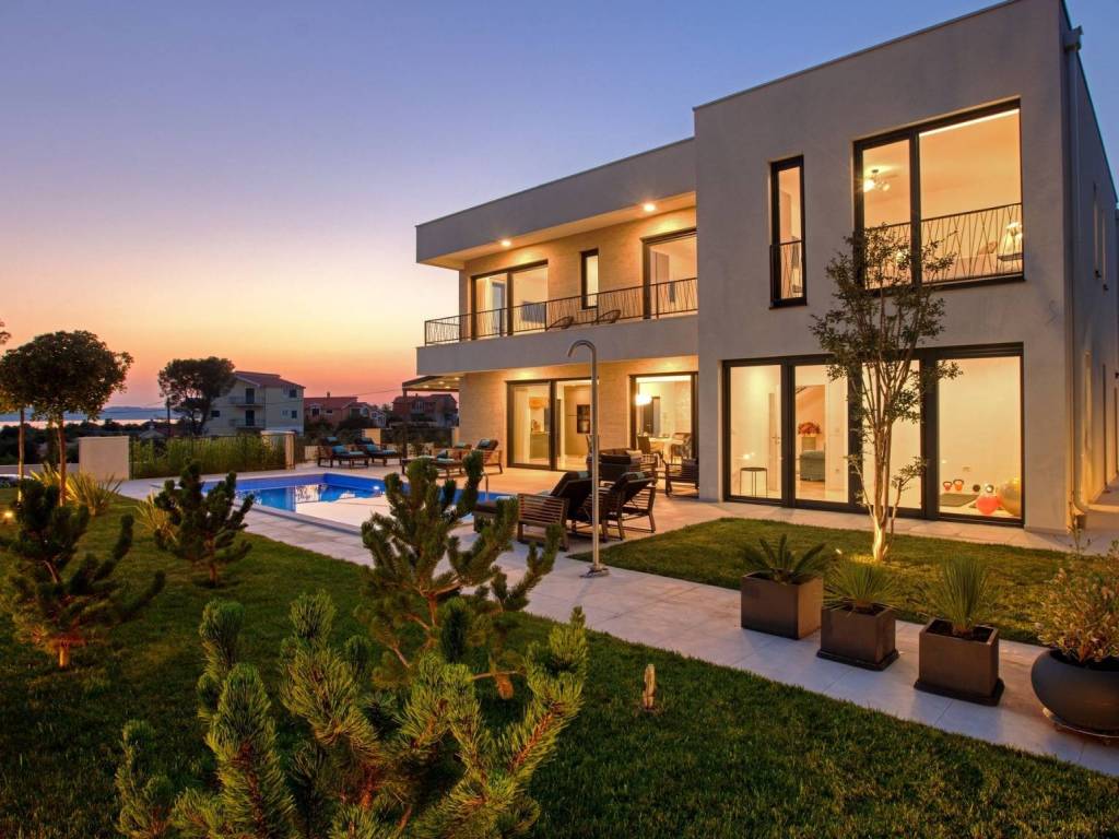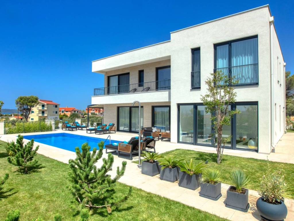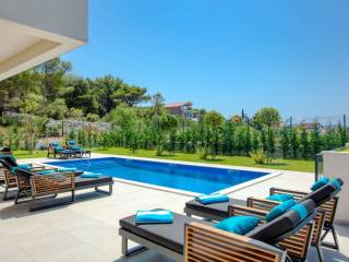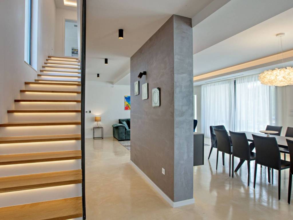 A luxurious, newly built villa with a living area of 250 m2 is located in the vicinity of Šibenik on a plot of land measuring 915 m2. The villa has a private entrance and is located in a quiet street, so there is no disturbance from neighboring properties or traffic. With the use of rich materials during construction and paying attention to details, an uncompromising real estate concept was created.