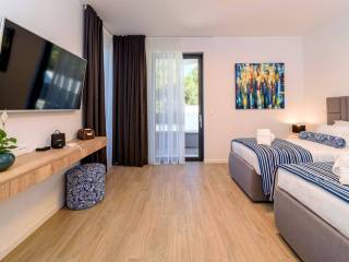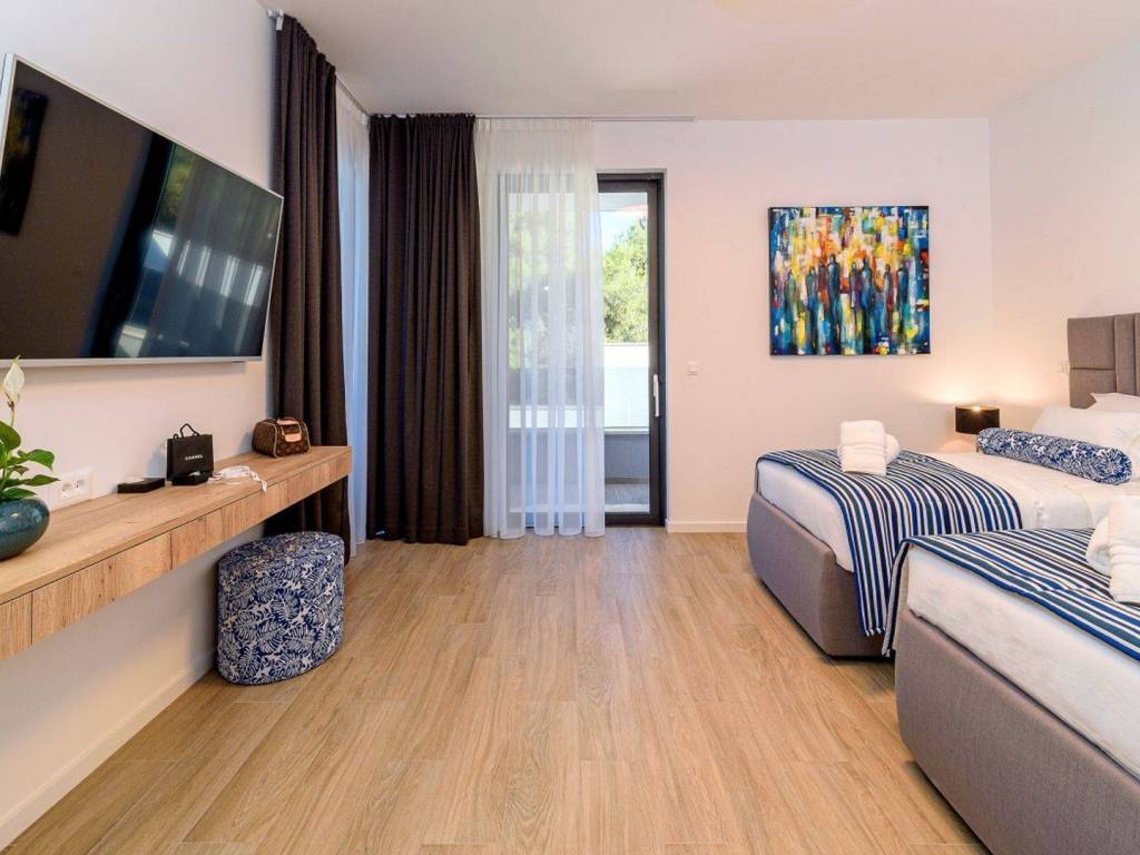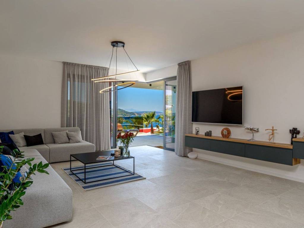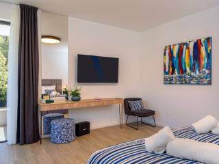 The quiet fishing village where the villa is located is known for its long beautiful bay of clear sea and untouched nature with several pebble and sandy beaches and a quality marina for boaters. In the town itself, there is a large number of shops and restaurants, as well as other amenities necessary for life throughout the year.