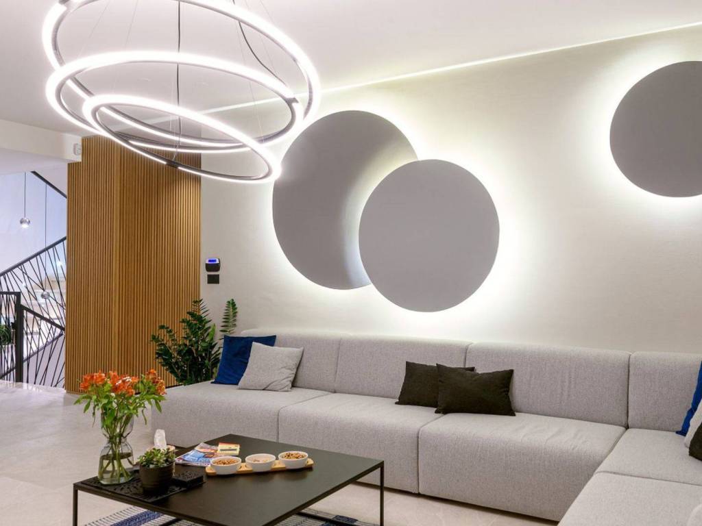 The TVs are Philips last generation with Android system, ambilight, and the diagonal screen sizes are impressive, 148 cm in the rooms and 176 cm in the diagonal in the living rooms.