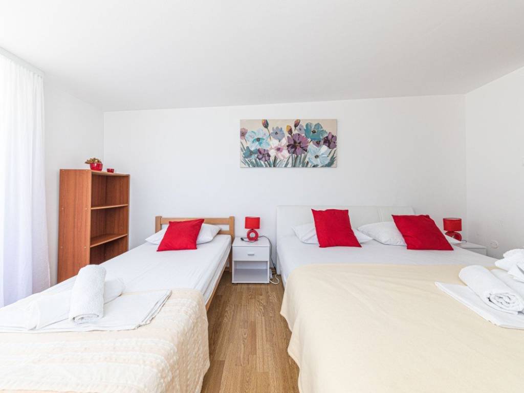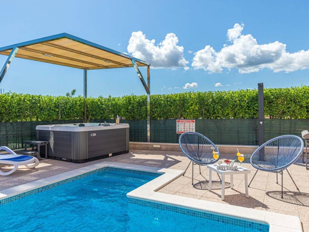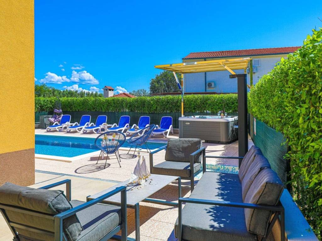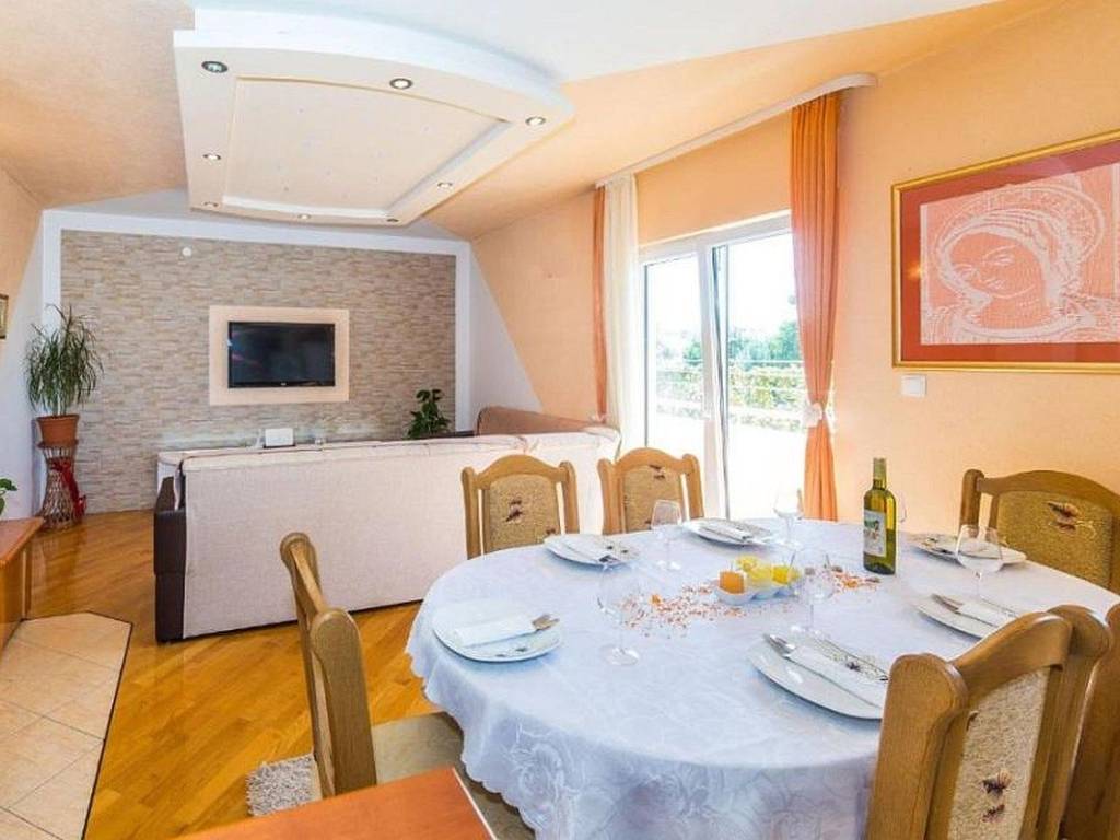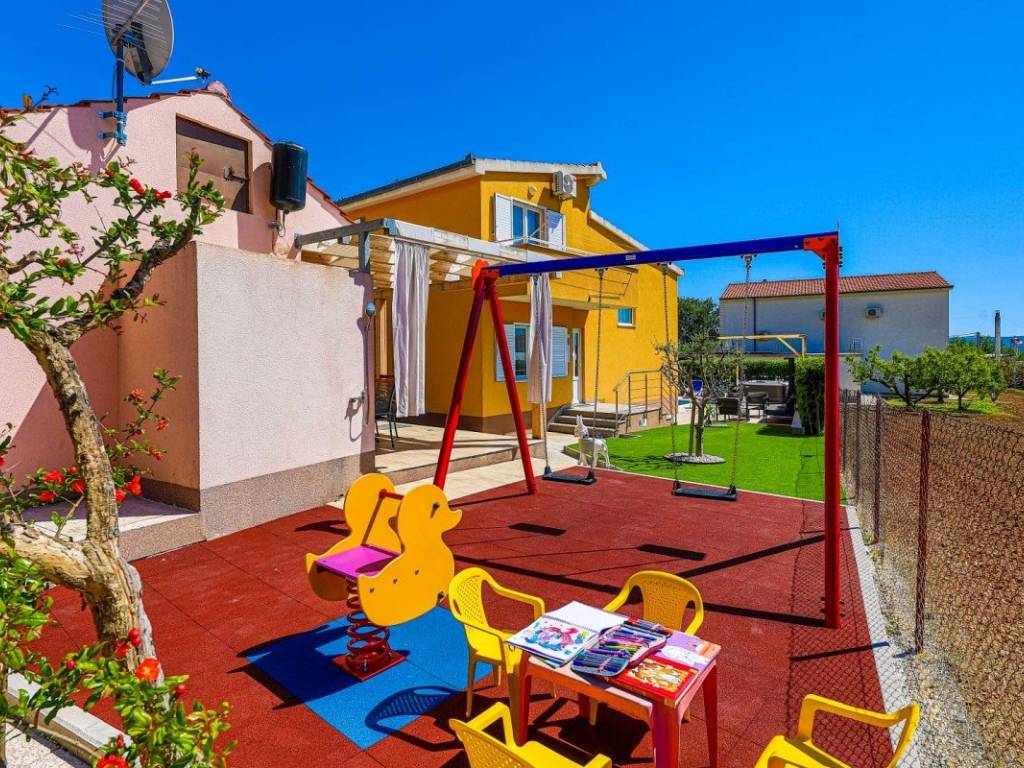 A villa with a swimming pool covers 270 square meters of living space and an auxiliary building of 30 m2 in Kaštela. It consists of two residential units. The main entrance of the villa leads to a spacious ground floor apartment, where there is a kitchen, living room and dining room. The open space concept creates a sense of spaciousness and connection. The kitchen and living room on the first floor have access to a beautiful south terrace that offers a view of the sea. In total, the villa has five bedrooms, two modern bathrooms with showers, while three more toilets are located throughout the building. The rooms are decorated and air-conditioned. In addition to the villa itself, the property also contains an auxiliary building with a fireplace and a room for preparing food on the grill, and a large swimming pool surrounded by a landscaped garden and horticulture typical of this climate. The location of the villa in a peaceful environment makes it an ideal destination for relaxation and rest. One can enjoy privacy. This villa offers the perfect combination of luxury, comfort and beautiful surroundings, making it an excellent choice for family life or as an investment. It has a garage parking space and 3 outdoor parking spaces. The property can be remodeled for family living, or continue to be used as a tourist mecca ideal for vacation.