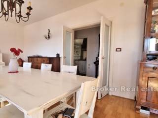 The first floor consists of a spacious kitchen, a large elegant dining room connected to the living room, a bathroom and a study. All rooms have access to a large balcony that surrounds the entire floor.