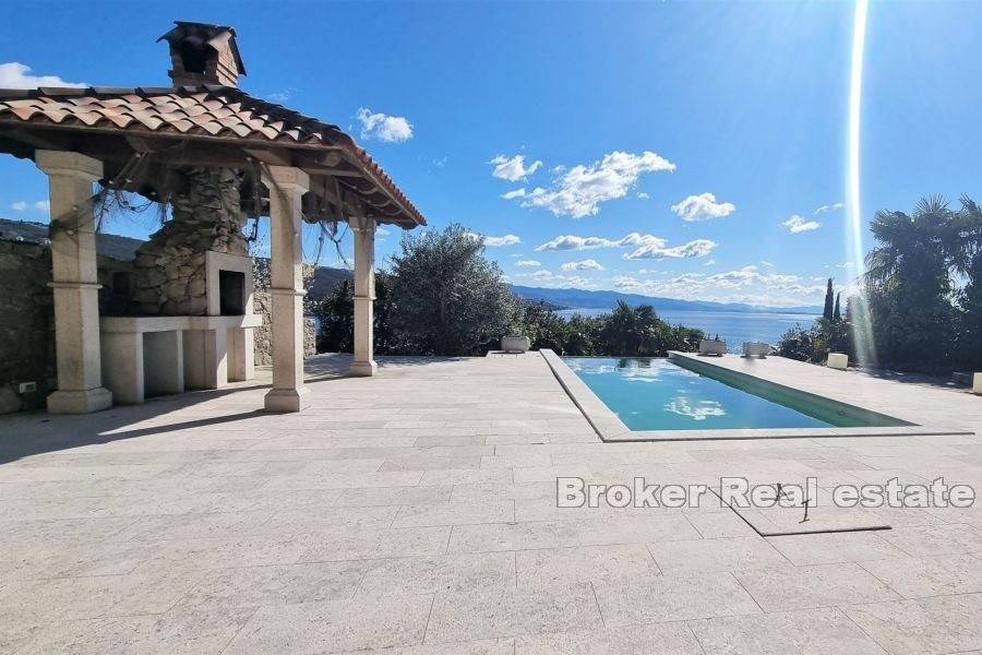At the front of the garden is a real green oasis with a staircase that can be used to walk down to the sea in just a few minutes. The yard consists of a swimming pool, a large paved sun deck and a covered summer kitchen.