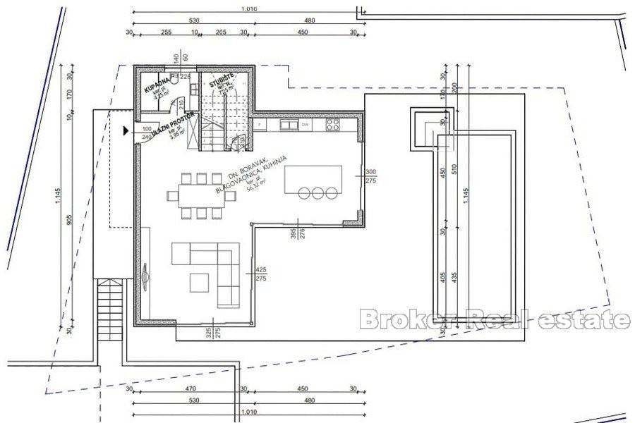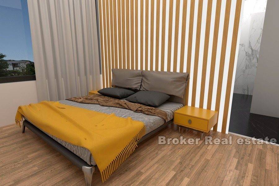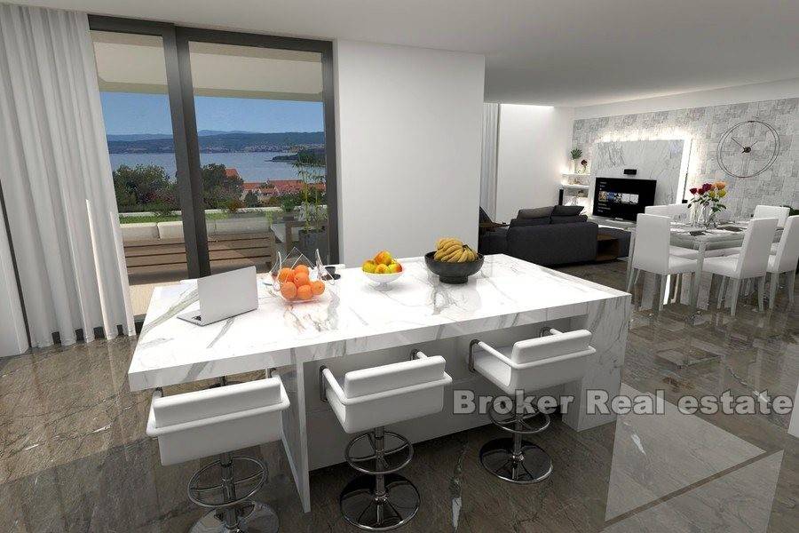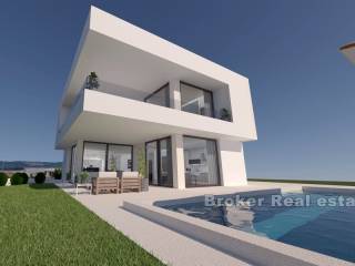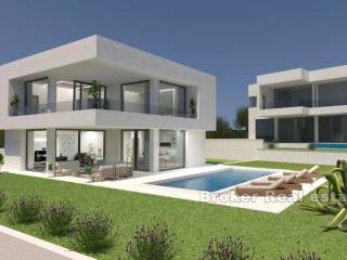 A modern villa with a pool located in an attractive location with a beautiful view of the sea. The villa is located in a quiet location and is 500 m from the sea and beautiful beaches. The luxury property with a living area of 221.6 m2 is spread over three floors. The basement consists of a fitness room, a dressing room, a sauna, a bathroom and a storage room. The ground floor consists of a living room with a kitchen and dining room and a spacious terrace. On the first floor there are three bedrooms with bathrooms and dressing rooms. Modern interior design, beautiful sea view, attractive location as well as proximity to the beach are just some of the reasons why this villa represents an ideal investment opportunity for tourism as well as for personal use throughout the year.
