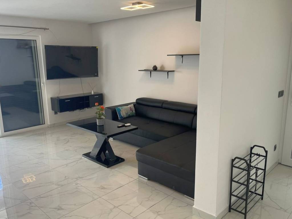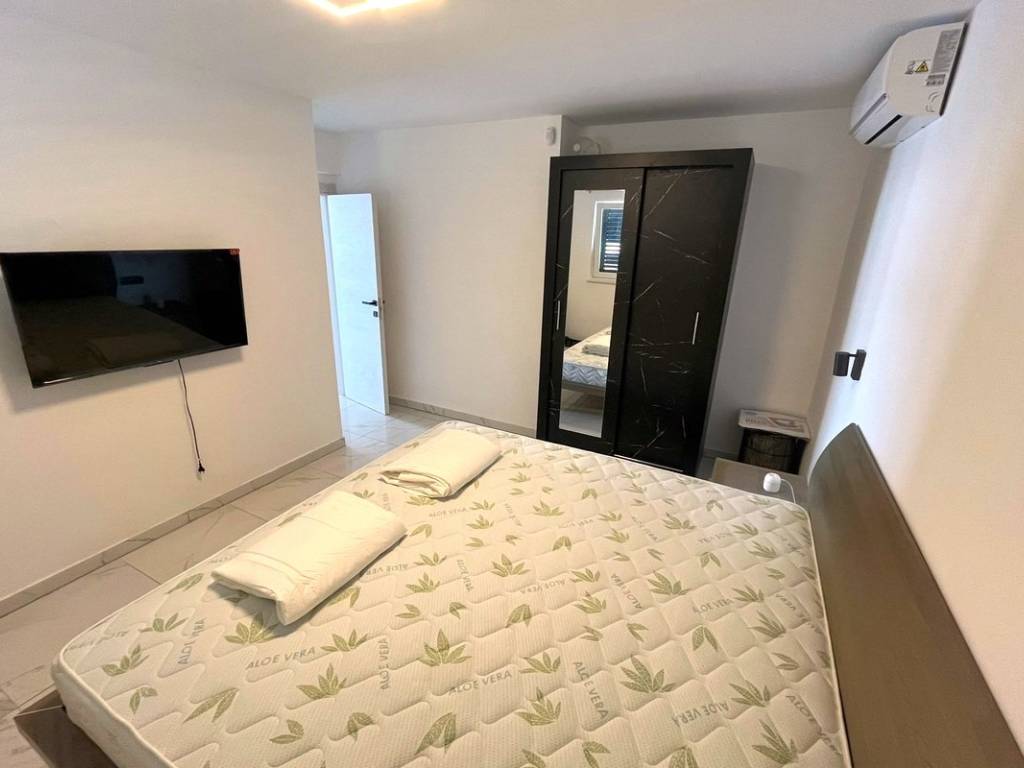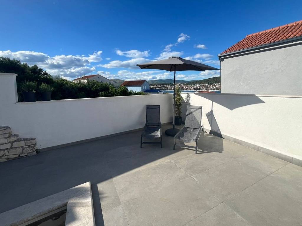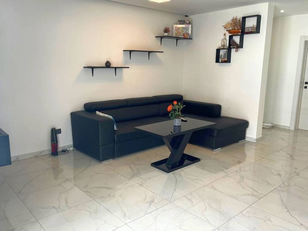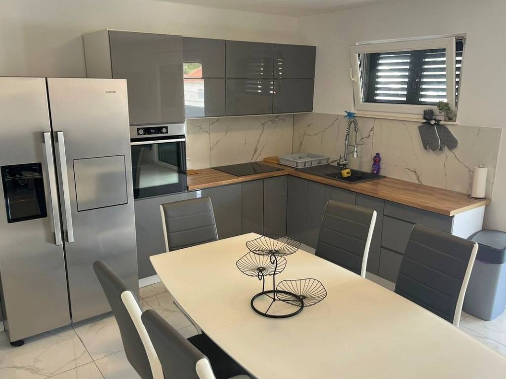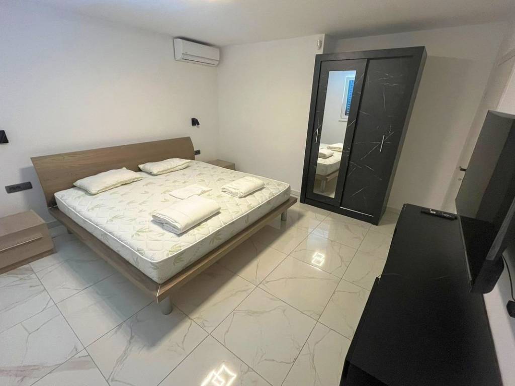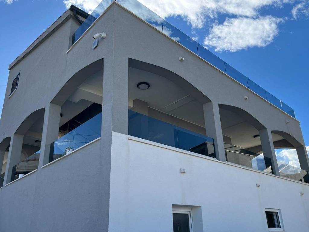 The house consists of 3 floors. On the ground floor there is a large storage room, while on the first floor there are 2 bedrooms, a bathroom, a hallway, a kitchen connected to the dining room, a living room and a large terrace.