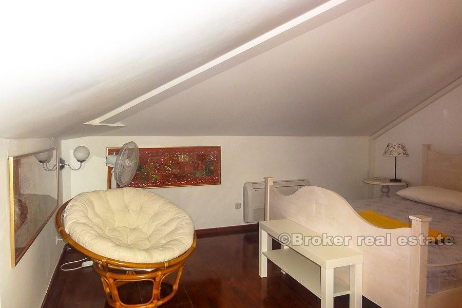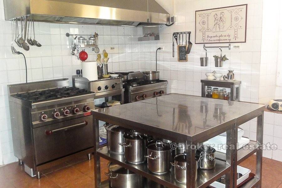 For many years the property has been in tourist function as a small family boarding house and can accommodate up to 20 people. The property is over 100 years old and in 2007 it was completely renovated and equipped in a Mediterranean style. From all floors there is a beautiful view of the sea and cultivated courtyard enriched with Mediterranean herbs. Between the property and the sea there is a small promenade, and the beach is just a few steps away from the property.