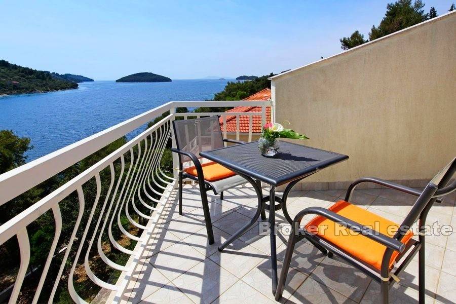 Villa hotel in the first row to the sea located on the western part of the island of Korčula. The property with a living area of 612 m2 is located on a plot of land of 601 m2 and consists of a basement, ground floor and two floors.