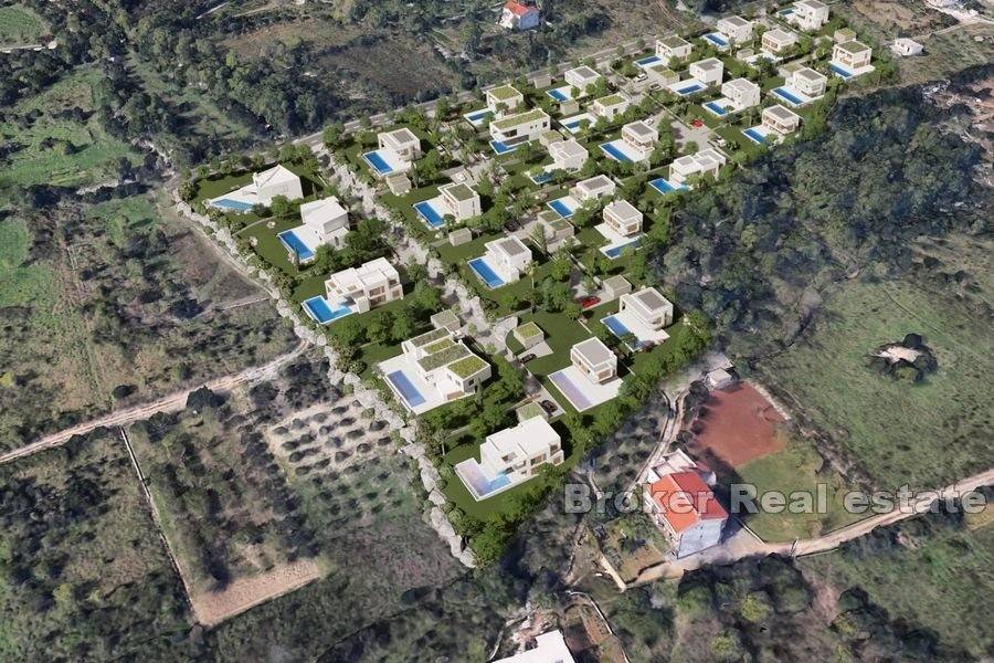 Prostrano građevinsko zemljište s projektom vila s bazenom i pogledom na more u Kaštelima. Zemljište površine 38 530m2 nalazi se u stambenoj M1 zoni. Prema urbanističkom planu grada