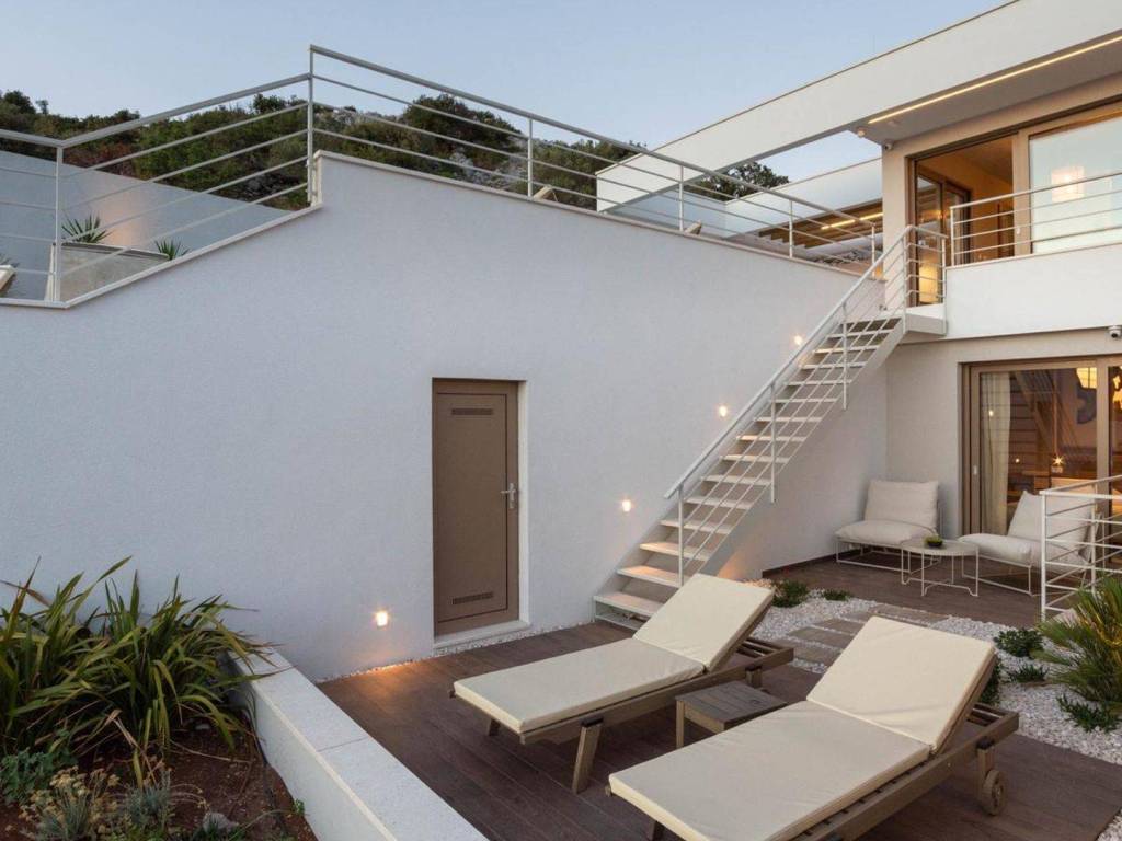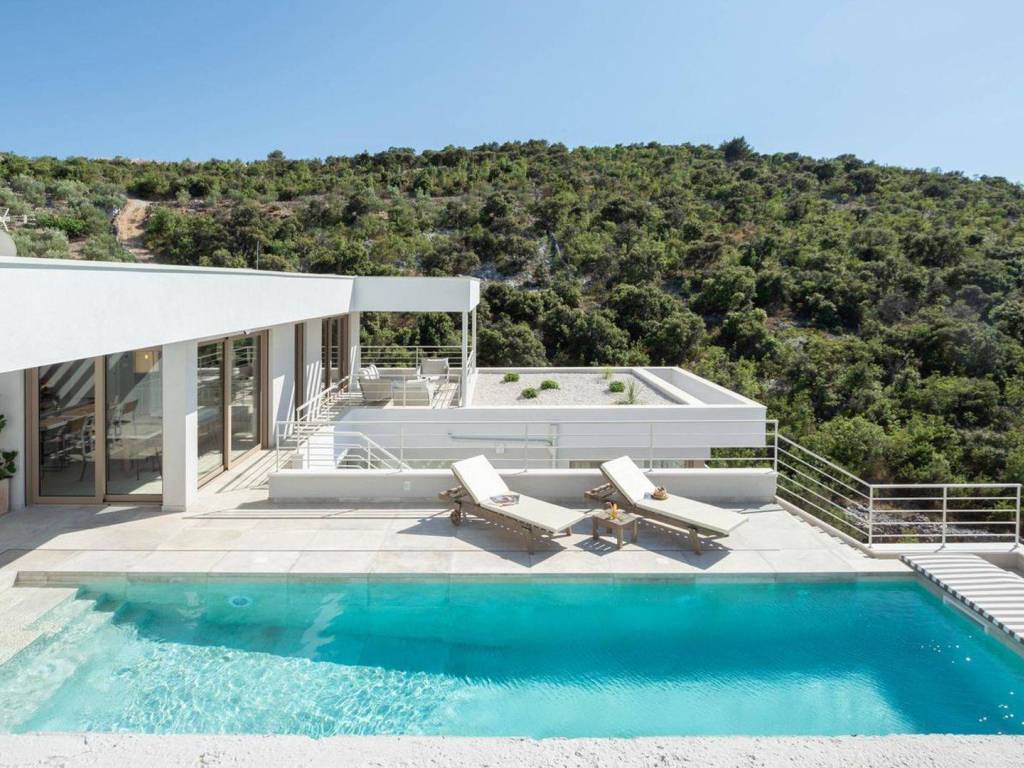 It is located on an elevated position with an accessible road, surrounded by landscaped, cultivated garden and terraces overlooking the sea.