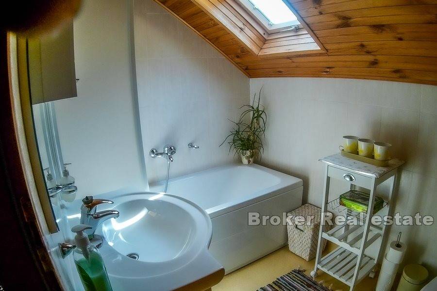 The attic consists of an entrance hall and hallway and three bedrooms, bathroom and two terraces (21 and 11m2). There are solar collectors on the roof.