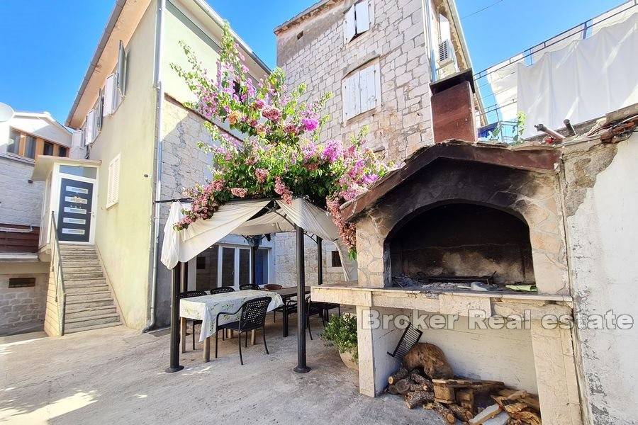 Charming stone house of approx. 180m2 net area, with private parking and yard, located in the third row to the sea, in the old town of Trogir.
