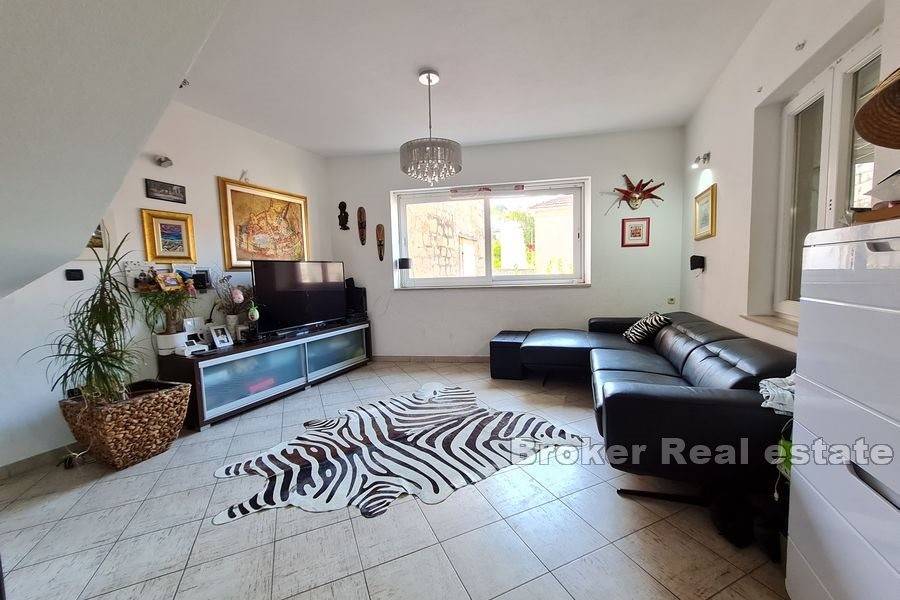 The house was built in 1958 and renovated in 2007 when the water and electricity installations were changed and the roof was replaced. In the two-storey apartment, new ceramic tiles and parquet were installed, underfloor heating was introduced and an AC unit was installed.