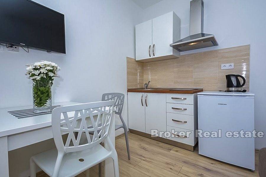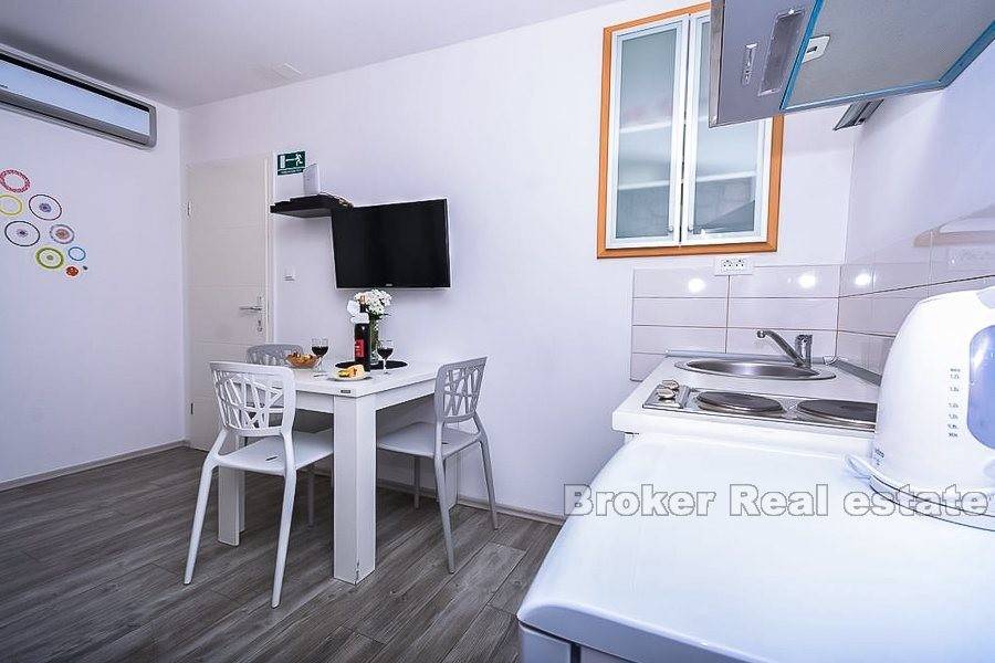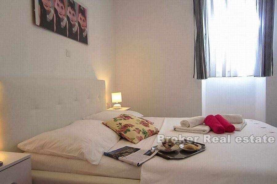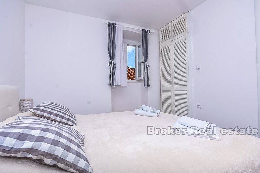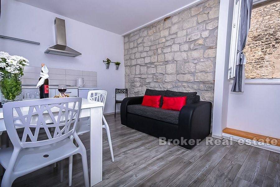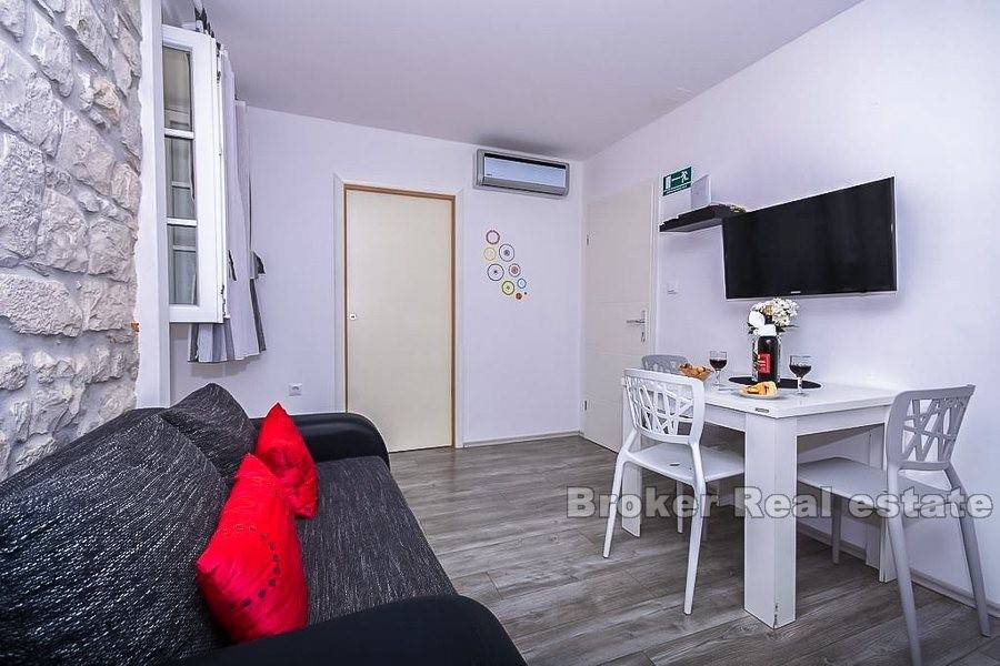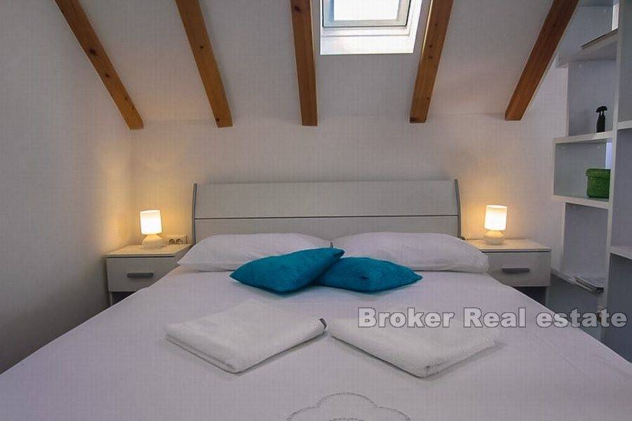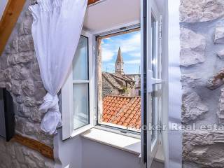 Trogir, old town, center, renovated stone house for sale. The house is located in the center but still in a quieter part. It consists of a ground floor and three floors. On the ground floor there is a one bedroom apartment and tavern. On the other three floors there are apartments for tourist rentals. The house is very well renovated and the new owner can immediately resume the rental business. Very good quality real estate in the heart of the old town of Trogir and great opportunity to buy.