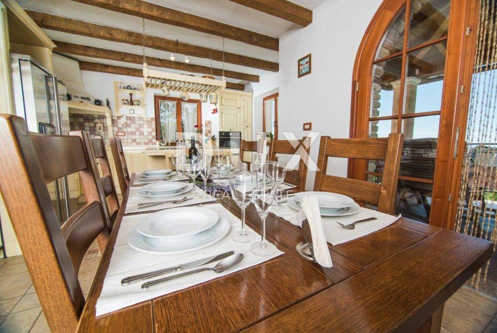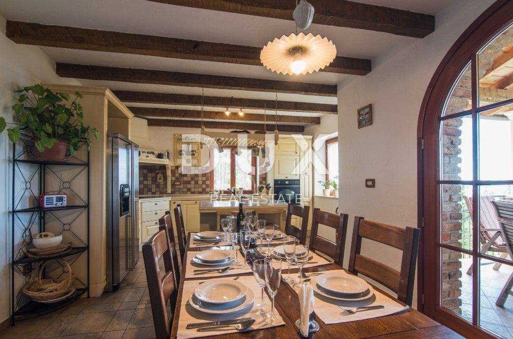 Located under the imposing Učka mountain, above Ičići, this elegant villa offers a unique combination of natural peace and proximity to the sea. In addition to a private heated pool, the villa boasts spectacular views of the Kvarner Bay, the islands of Krk and Cres and the Istrian peninsula, creating the perfect setting for a luxurious vacation and life.