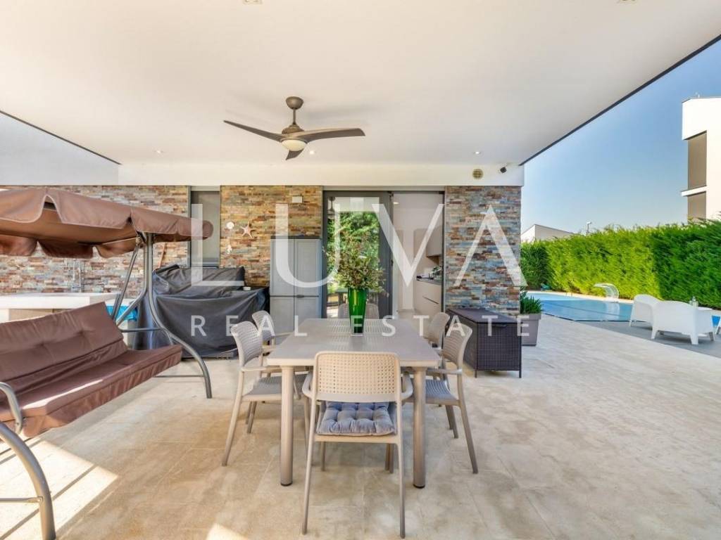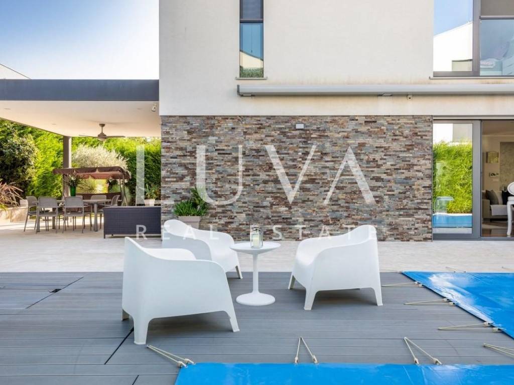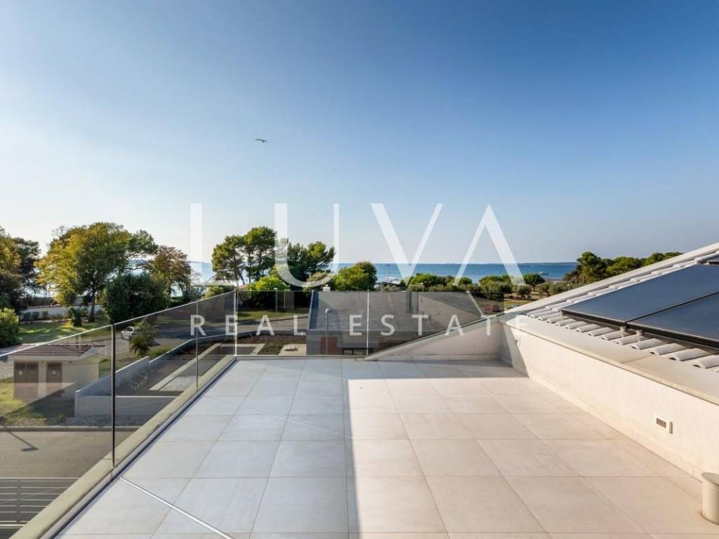 A high-end luxury villa is offered in Fažana, only 80 meters from the sea and maintained pebble beaches, with an open view of the sea and the Brijuni Islands. A property that combines modern architecture, high-quality equipment and a prestigious location.