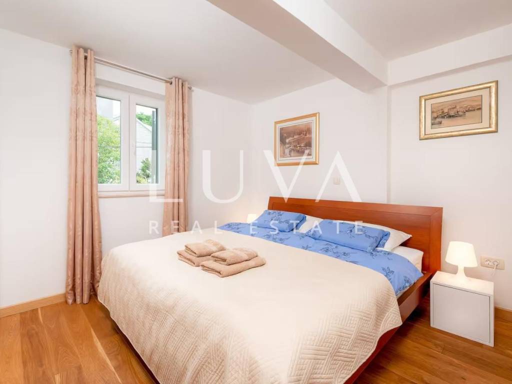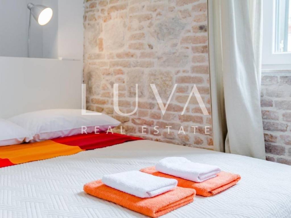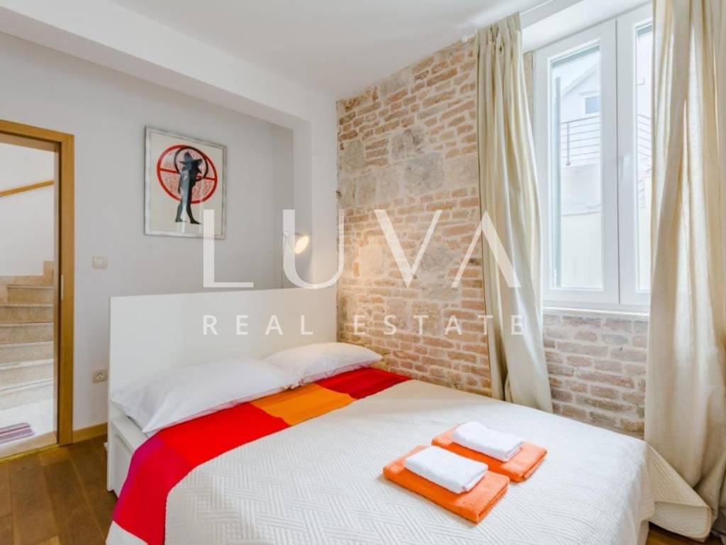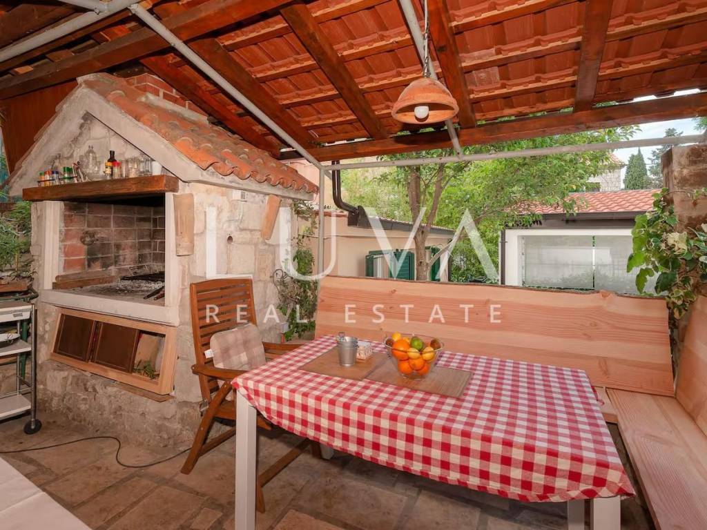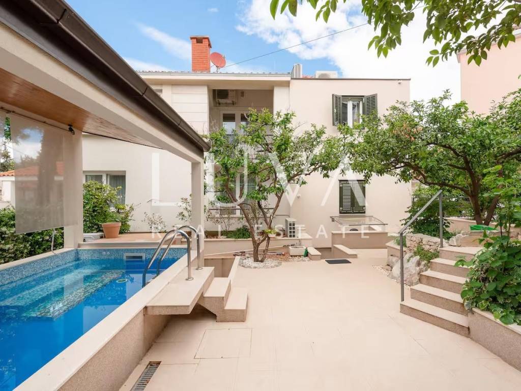 Located in the authentic setting of the Varoš district, just steps away from Diocletian's Palace and the Riva promenade, this exceptional property offers a perfect balance between historic charm and modern luxury. Fully renovated, this stone house spans a total area of 192 m², including the main house and a smaller annex. It features five spacious bedrooms and three elegant bathrooms, along with a private sauna and a covered swimming pool – a true rarity in the heart of the city.