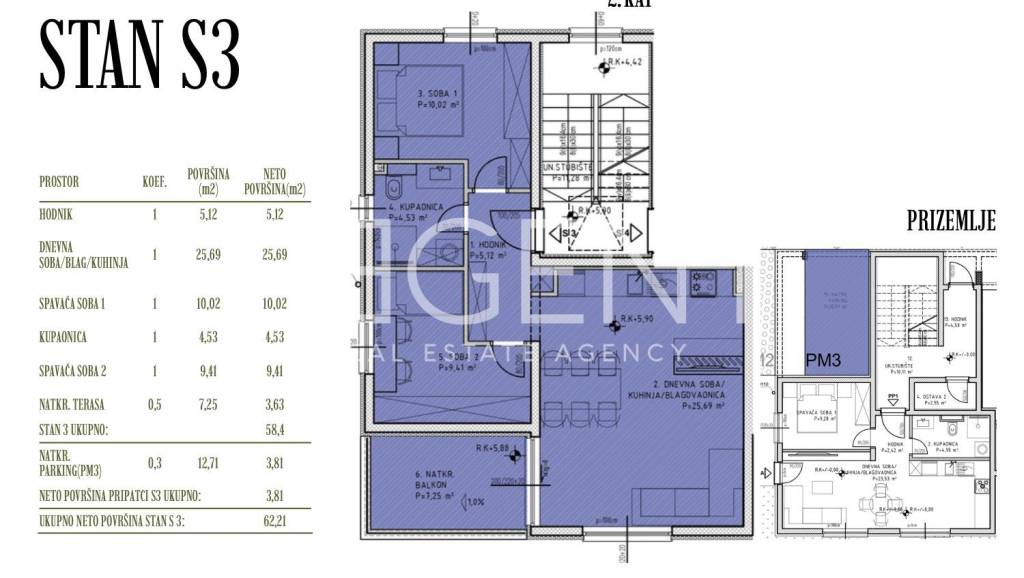 Apartment S1 is located on the first floor of a modern new building in Kaštel Stari, in a quiet and pleasant location ideal for everyday life. Thanks to its functional layout and quality equipment, it is an excellent choice for couples, smaller families, as well as investors looking for a secure property in an attractive part of Kaštela. The total net area of the apartment is 58.40 m². It consists of a hallway, two bedrooms, a bathroom and an open concept living room with a dining room and kitchen with an area of 25.69 m², which is the central and most spacious part of the home. From the living area, there is access to a covered terrace of 7.25 m², ideal for morning coffee, relaxation or socializing outdoors. The apartment is equipped with underfloor heating, air conditioning, PVC joinery and security doors, while the floor coverings are made of laminate, which gives the space warmth and a modern look. Large glass surfaces allow for plenty of natural light and a pleasant atmosphere throughout the day. The apartment comes with an outdoor uncovered parking space as well as a garage parking space, which significantly increases the level of comfort and practicality. The property is located in a quiet and well-maintained part of Kaštel Stari, surrounded by family houses and smaller residential buildings, which provides a sense of privacy and security. Nearby are shops, a school, a kindergarten, a pharmacy, sports facilities and public transport, and the sea and well-maintained beaches are only a few minutes' drive away, as is the promenade along the coast which is ideal for recreation and relaxation. The location offers excellent transport connections to Split and Trogir, which makes this property practical for living throughout the year, but also very attractive for tourist rental. The purchase is enabled in construction phases. For more information, floor plans or to arrange a viewing, contact us.