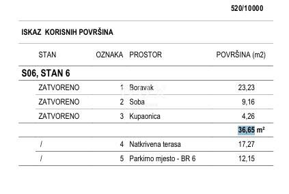 Basic characteristics: Apartment area: 36.65 m (maximum use of the floor plan) Terrace: Spacious covered terrace of 17.27 m ideal for enjoying summer evenings. Parking: Private parking space (12.15 m) included in the price. Location: Quiet street, only 300 meters of easy walk to the crystal clear sea.