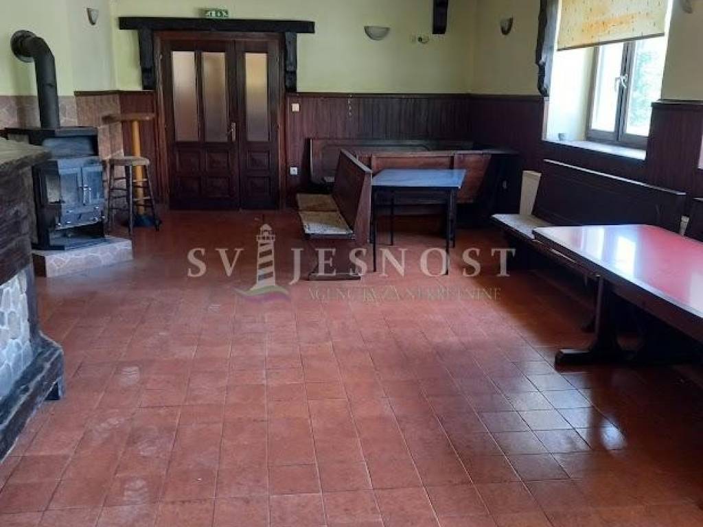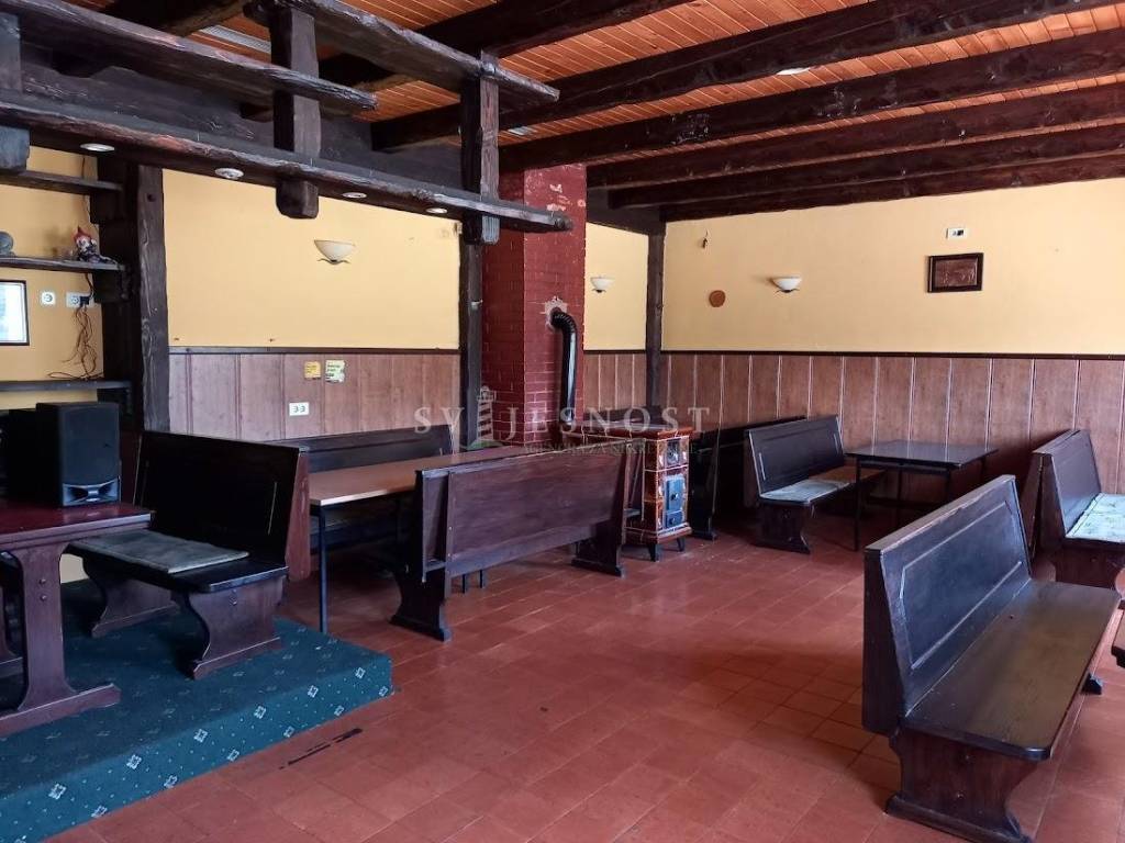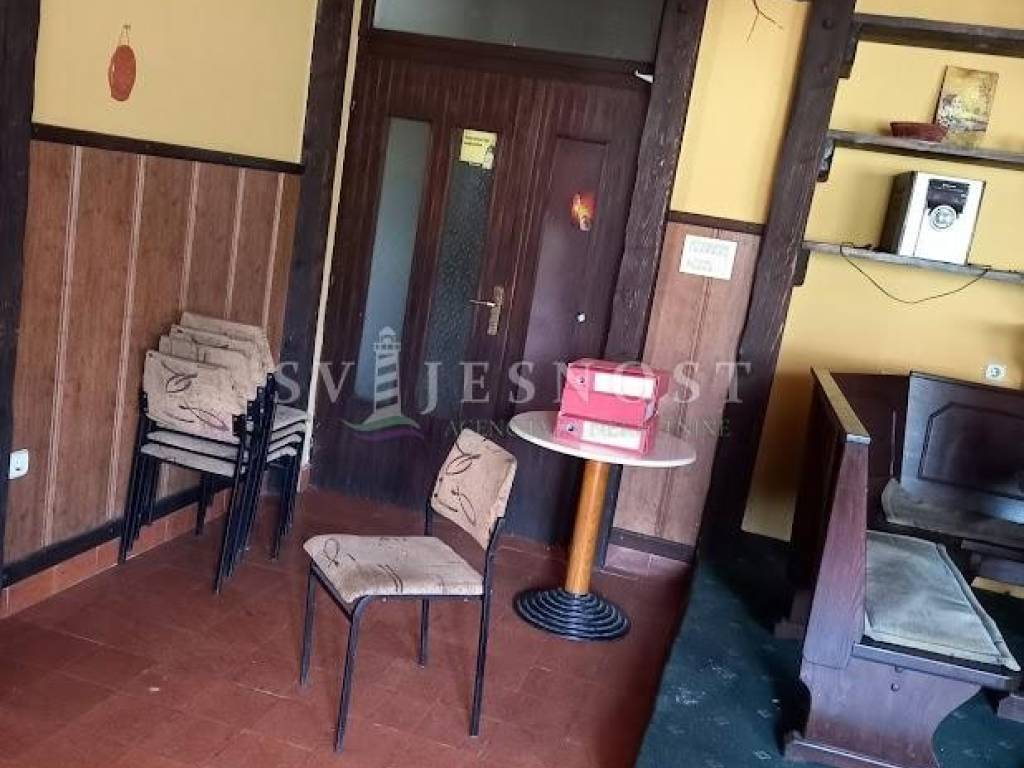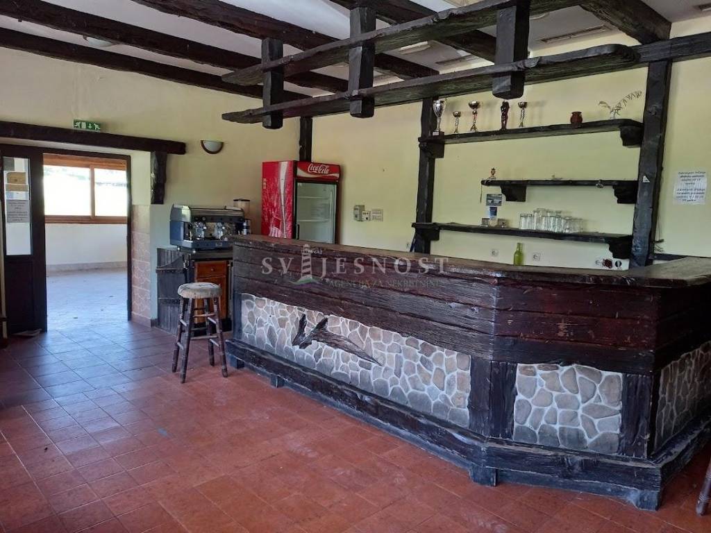 Sastoji se od dvije veće prostorije (sale), hodnika, dva sanitarna čvora (9,52 m2 i 6,8 m2), spremišta, kotlovnice, kuhinje(cca 23 m2)- ukratko rečeno nekad ugostiteljski objekt djelomično opremljen.